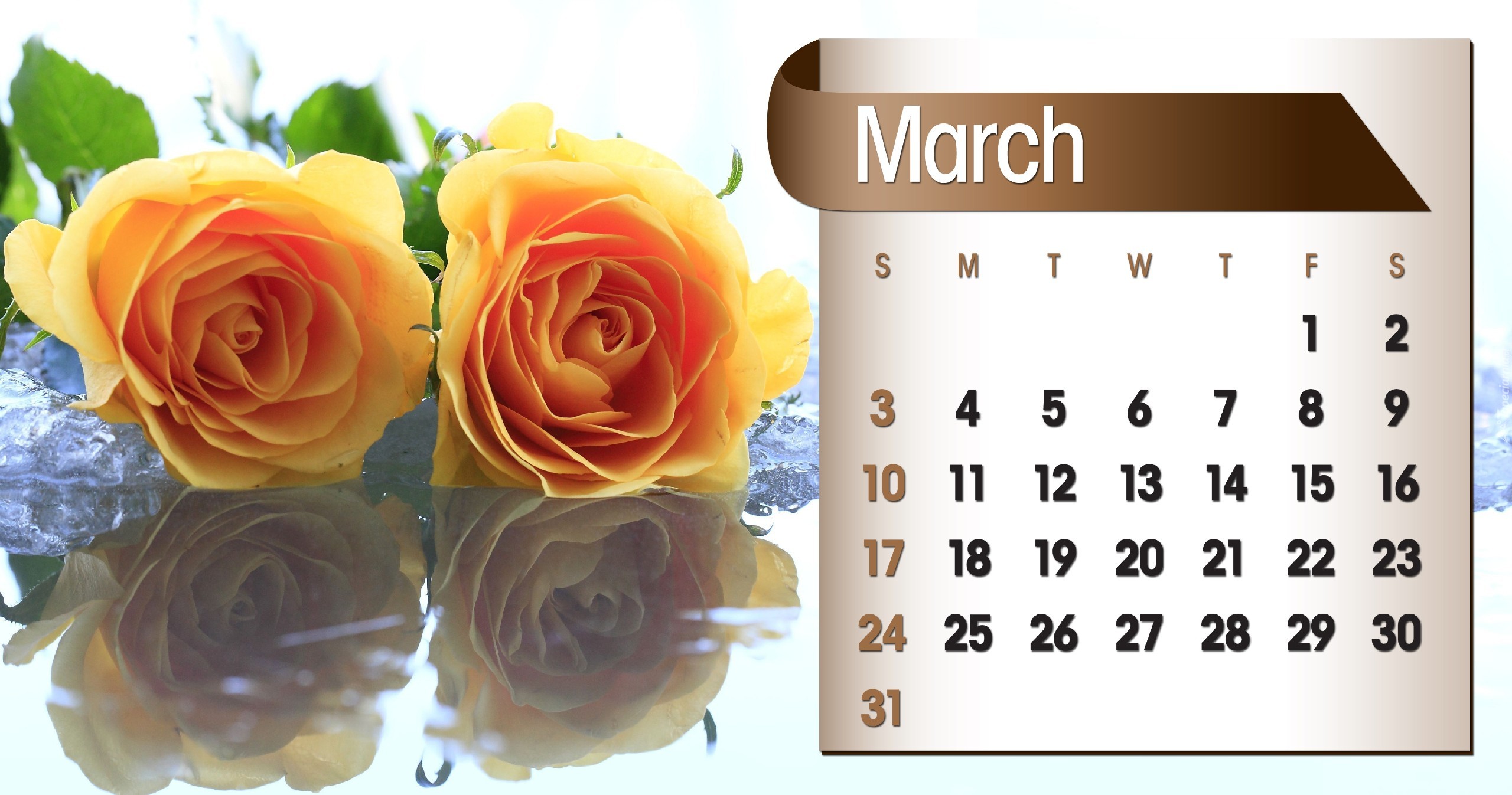 Edytor tapety: Kalendarz, Róże, Marzec, 2013r