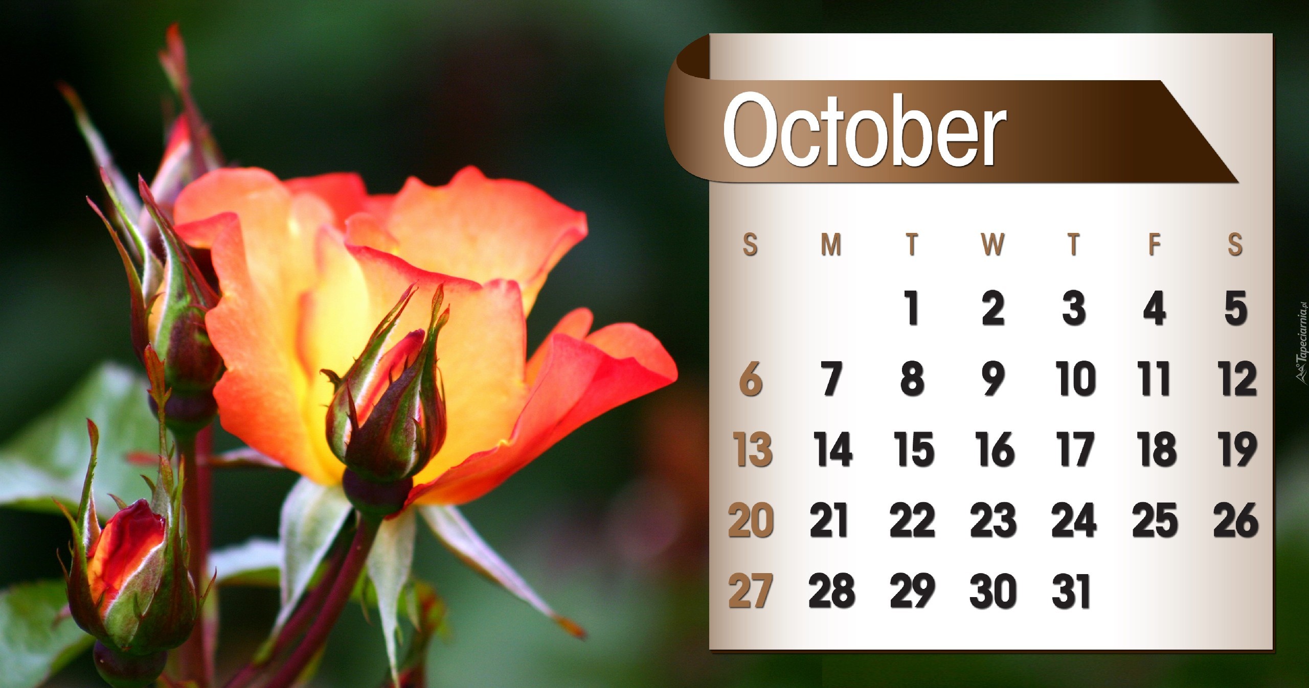 Edytor tapety: Kalendarz, Róże, Październik, 2013r