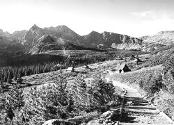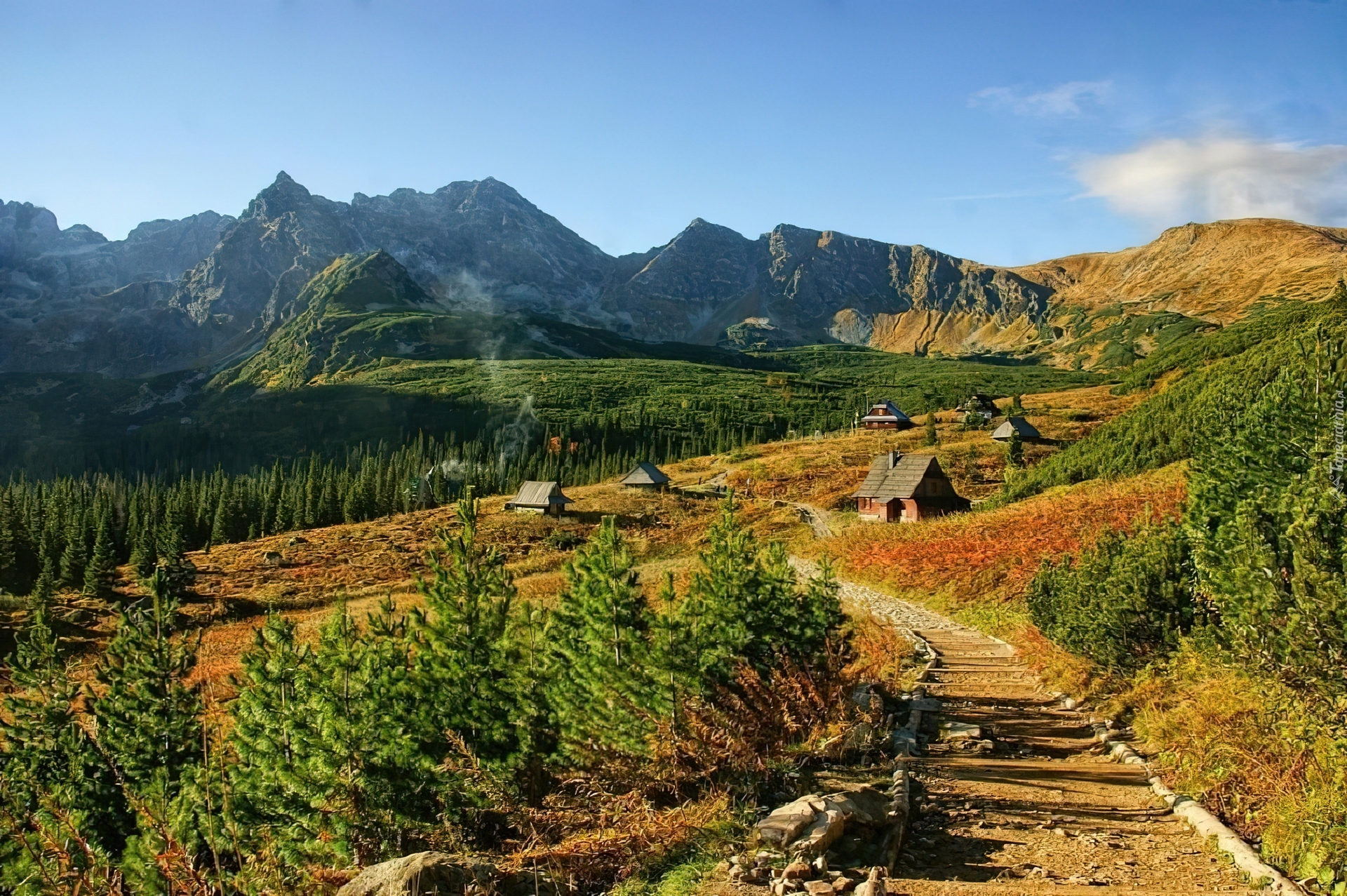 Edytor tapety: Góry, Dolina, Szałasy, Ścieżka