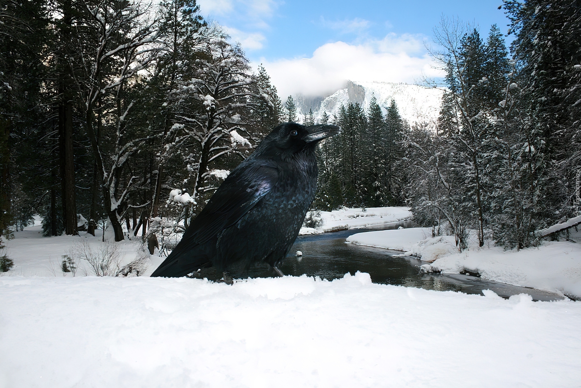 Edytor tapety: Zima, Rzeka, Śnieg, Gawron