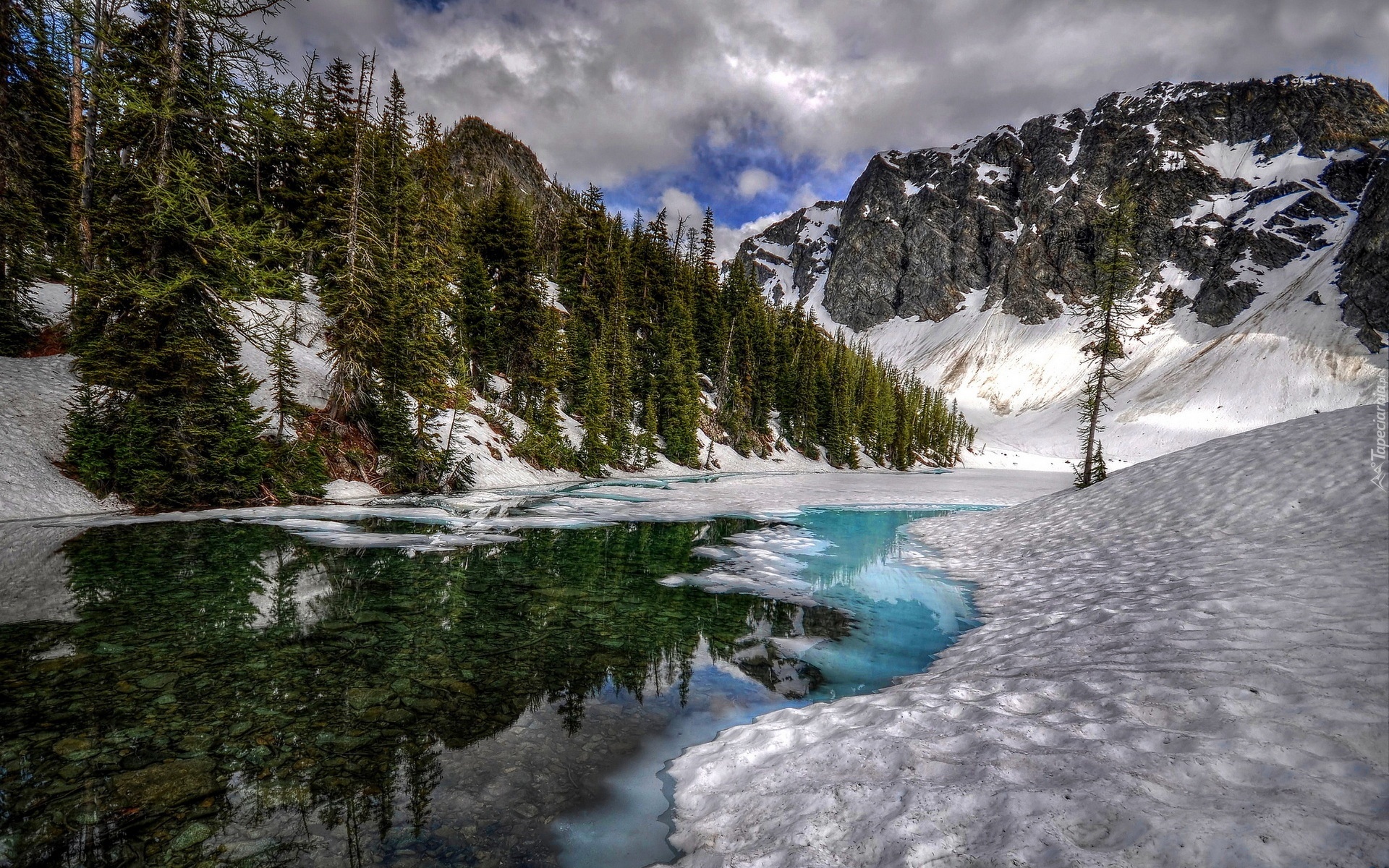Edytor tapety: Zima, Góry, Las, Rzeka