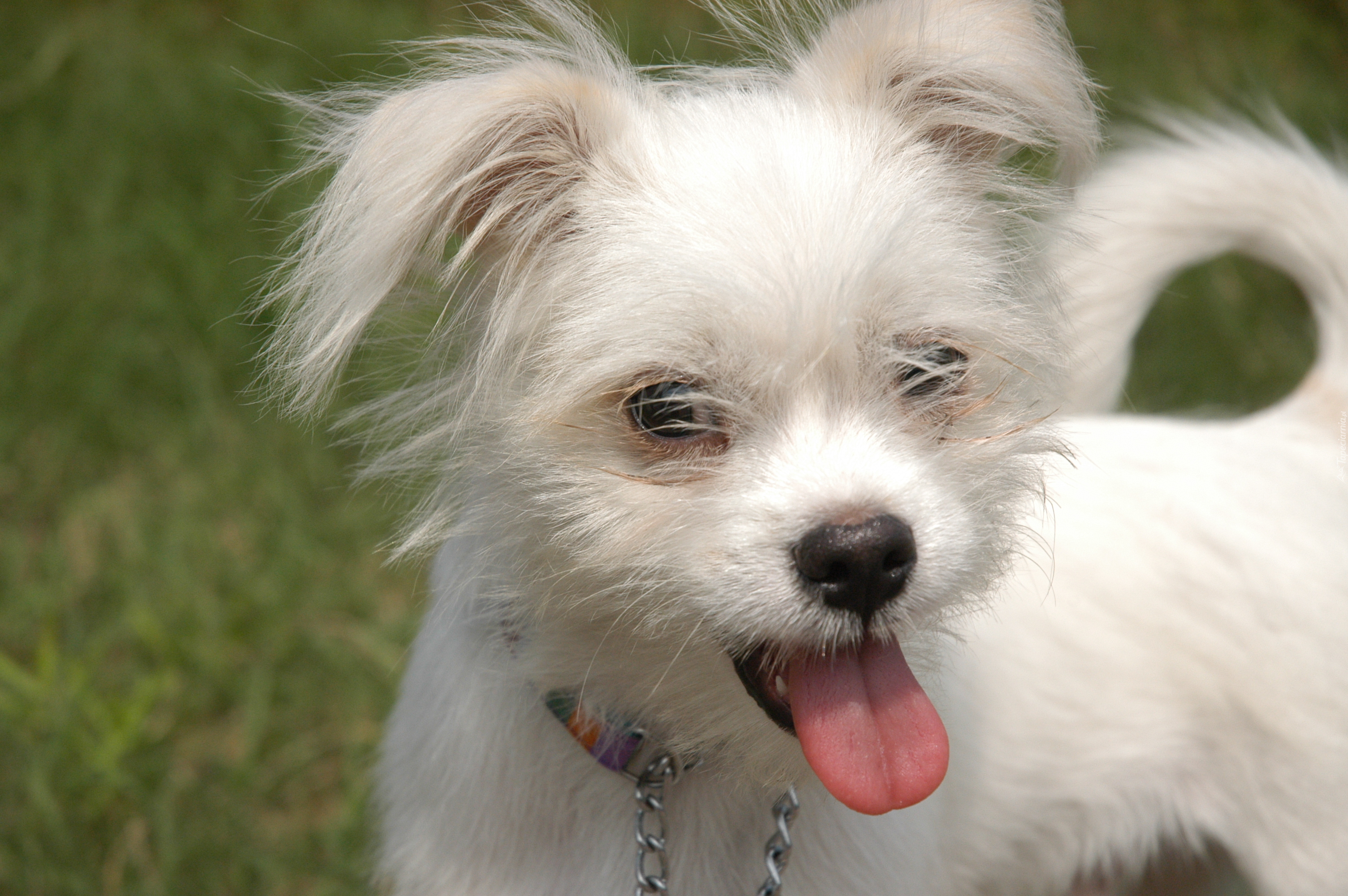 Edytor tapety: Biały, Piesek, Obroża, Język