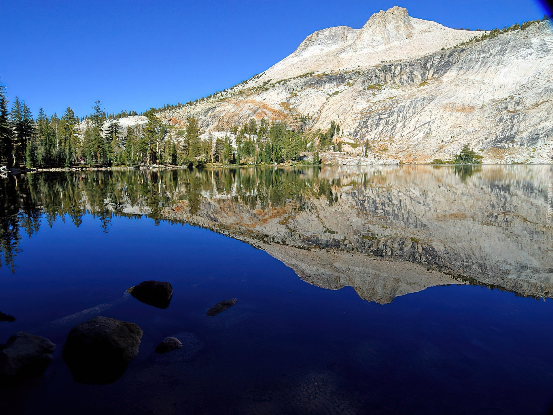 Edytor tapety: Stany Zjednoczone, Stan Kalifornia, Park Narodowy Yosemite, Jezioro Yosemite Lake, Góry, Drzewa