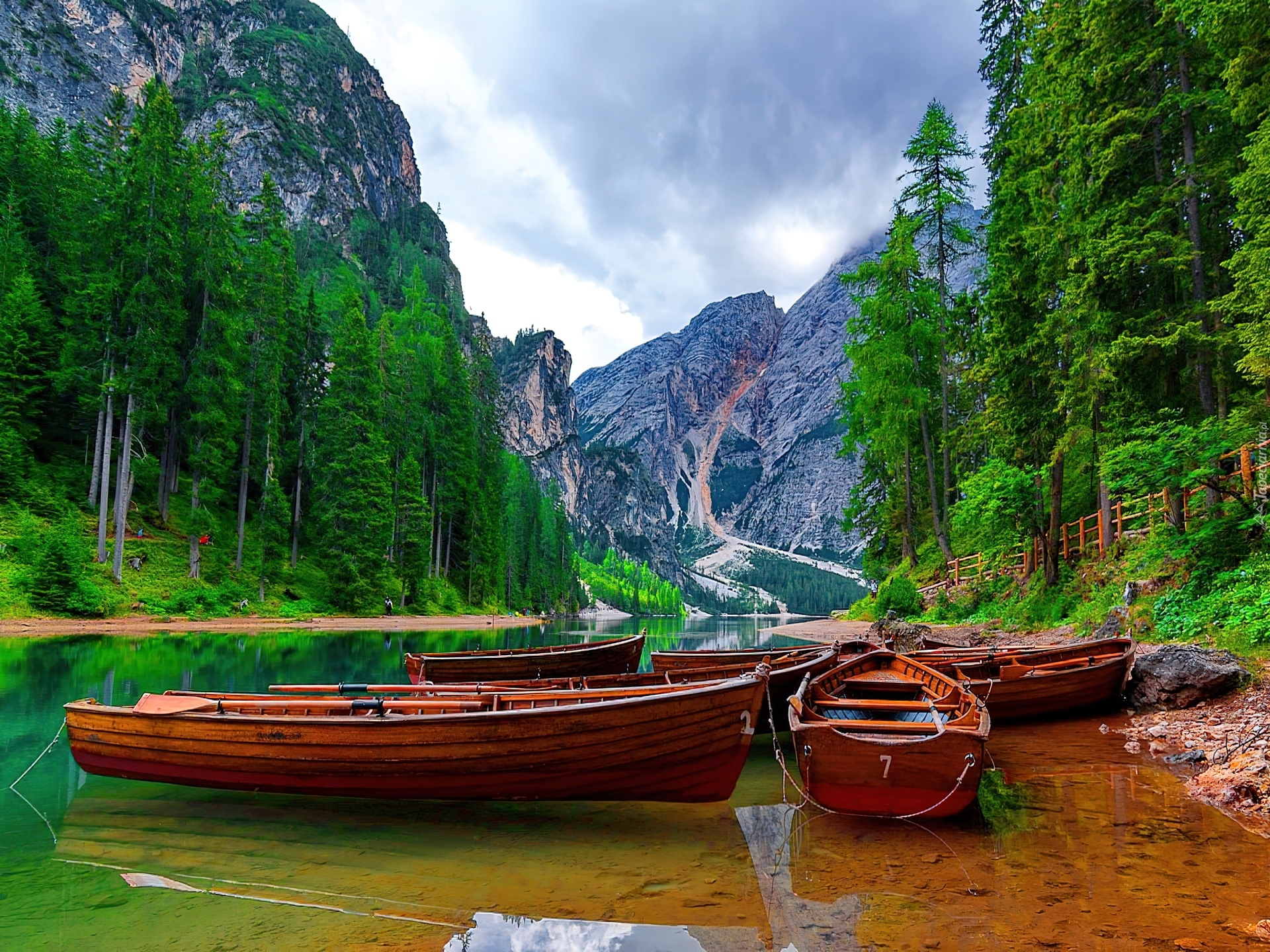 Edytor tapety: Góry, Jezioro, Las, Łódki