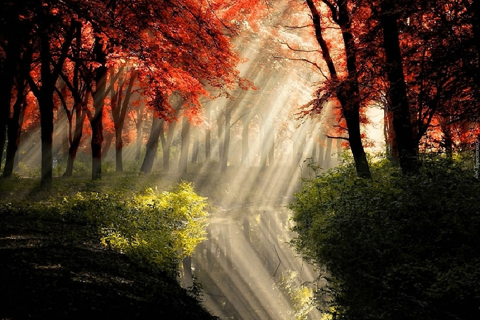 Edytor tapety: Las, Promienie, Słońca, Wschód