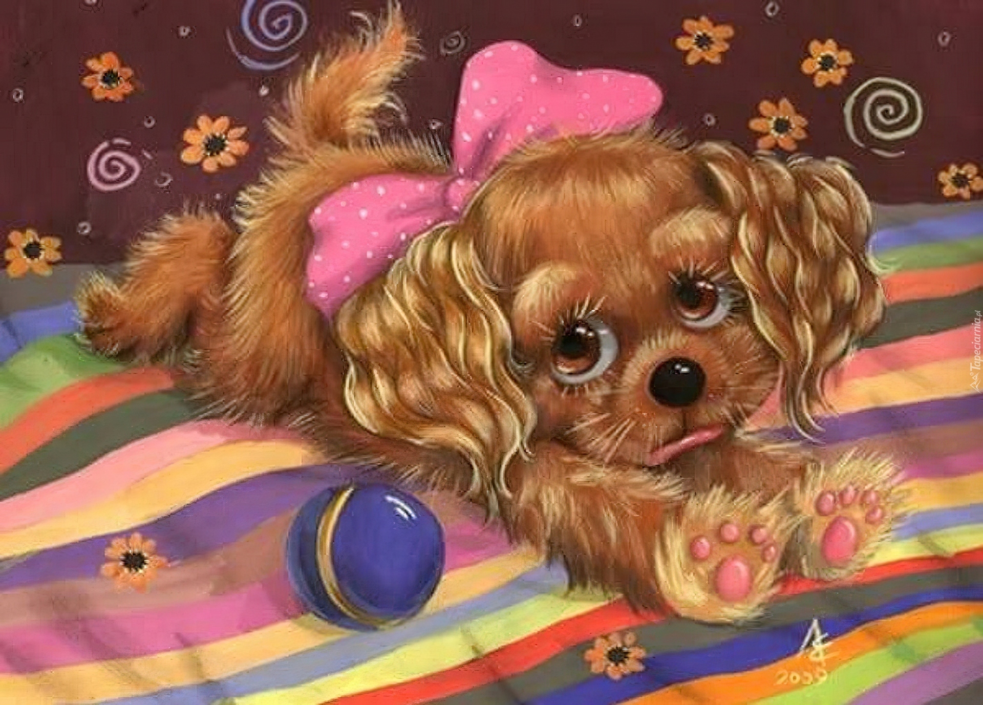 Edytor tapety: Piesek, Kokarda, Piłeczka