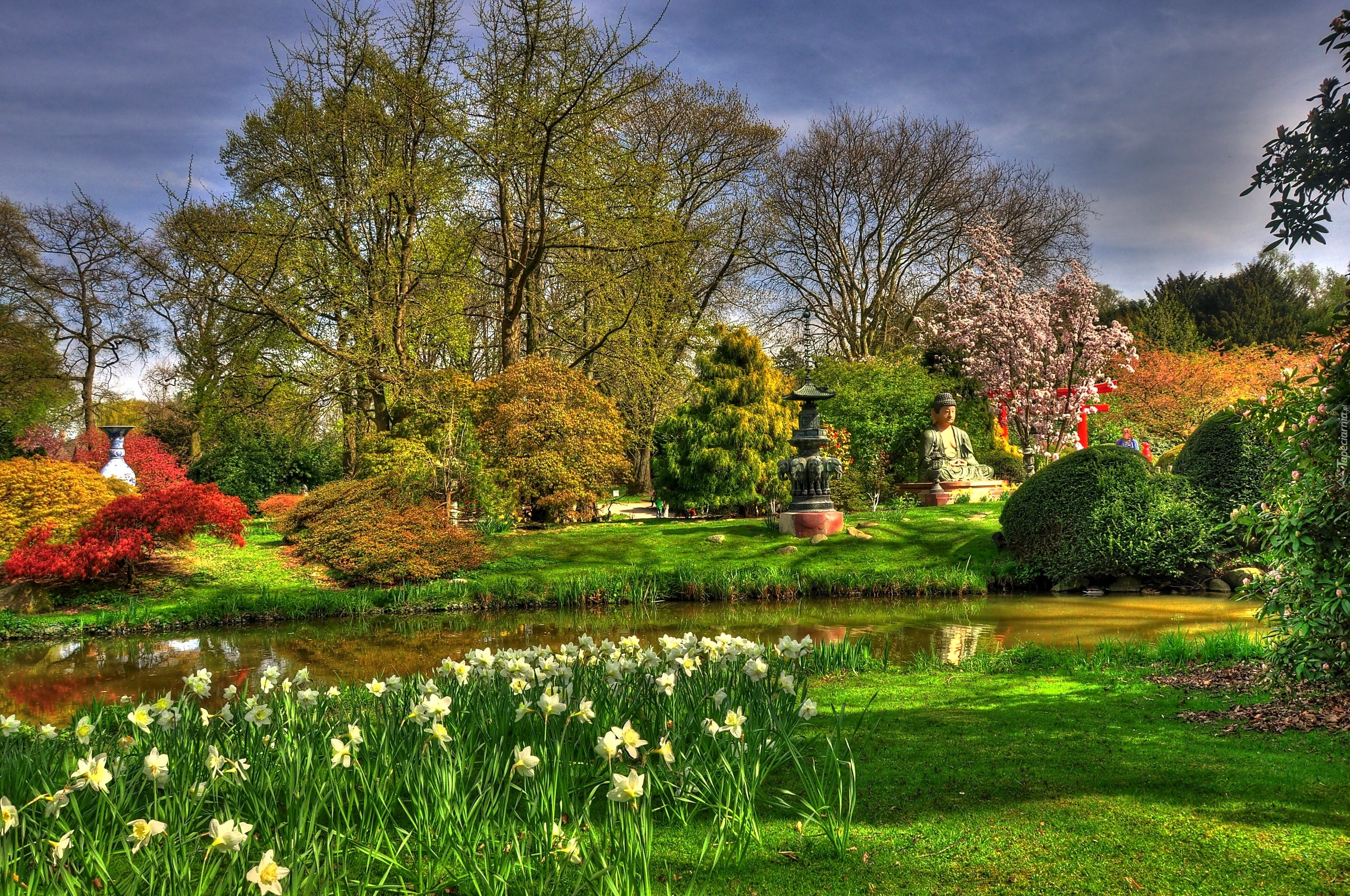 Edytor tapety: Ogród, Kwiaty, Zieleń, Woda