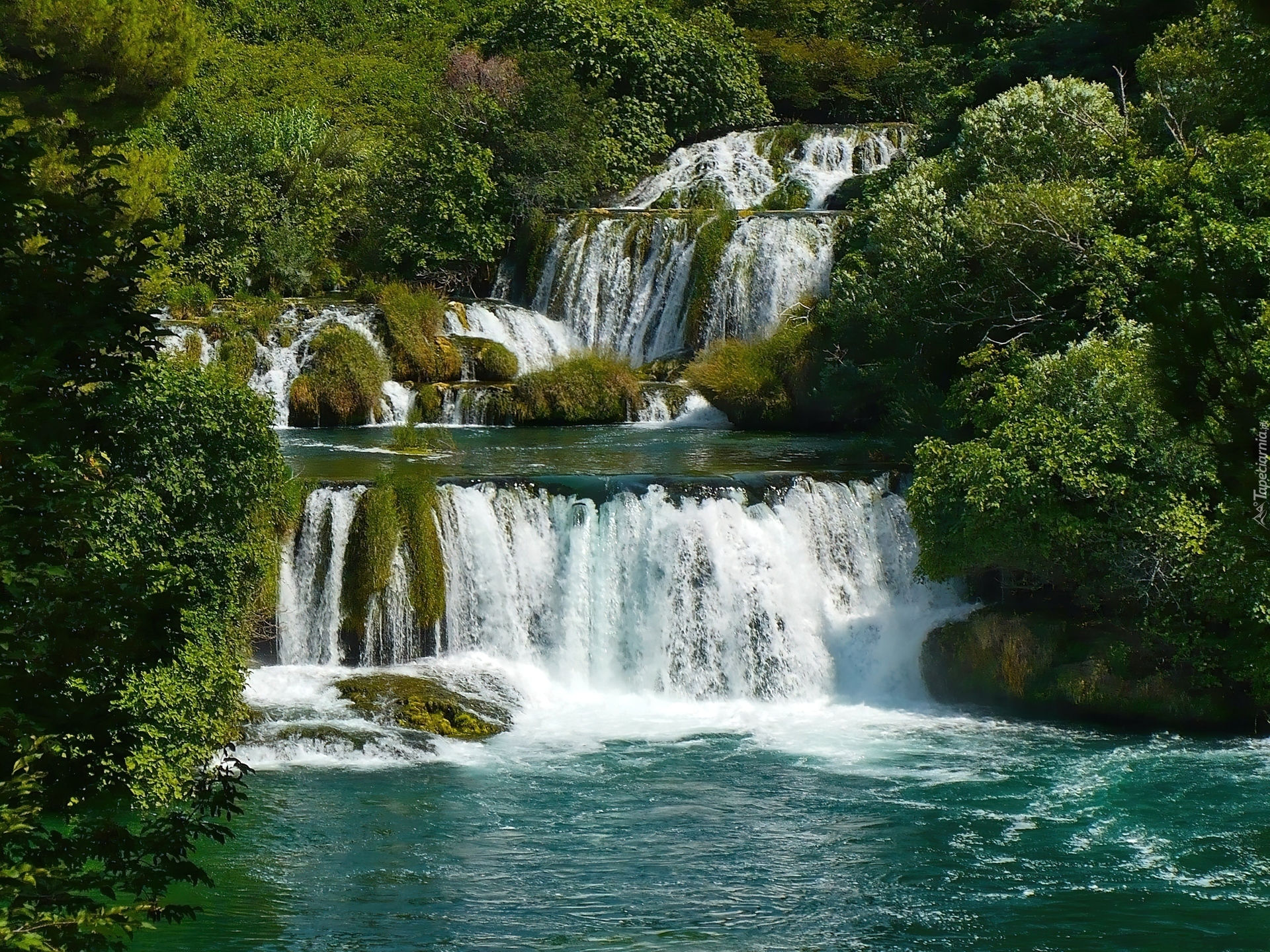 Edytor tapety: Rzeka, Wodospad, Drzewa