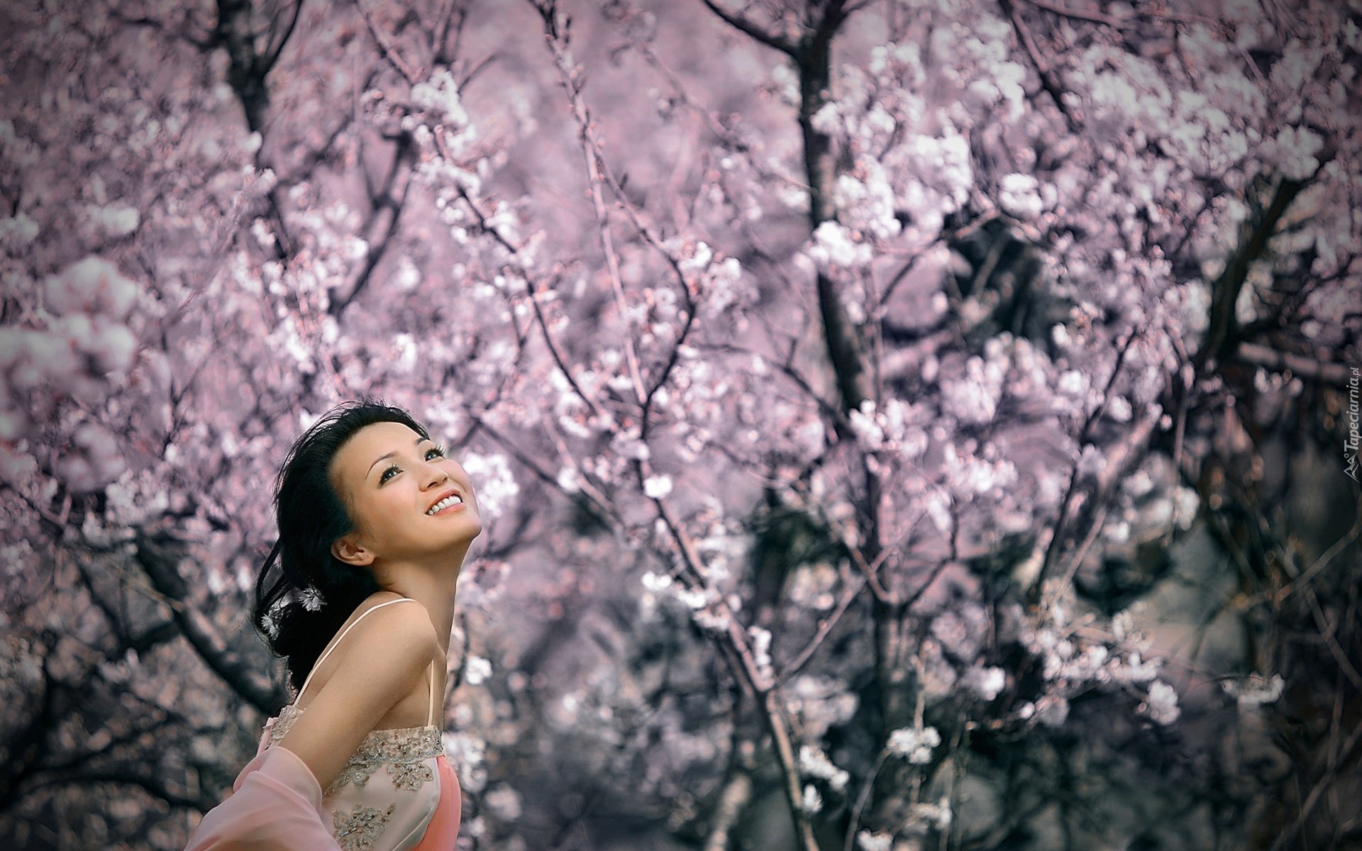 Edytor tapety: Kobieta, Brunetka, Drzewa