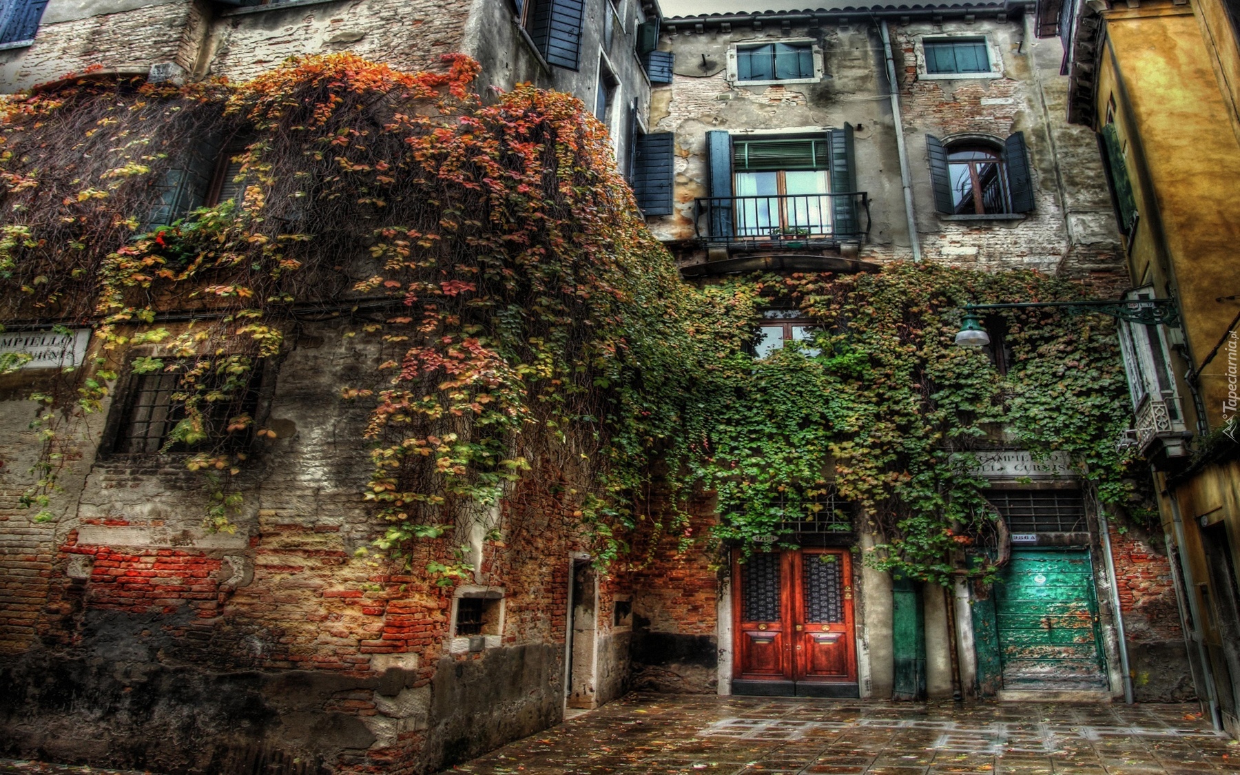 Edytor tapety: Dom, Pokryty, Liśćmi, Wina