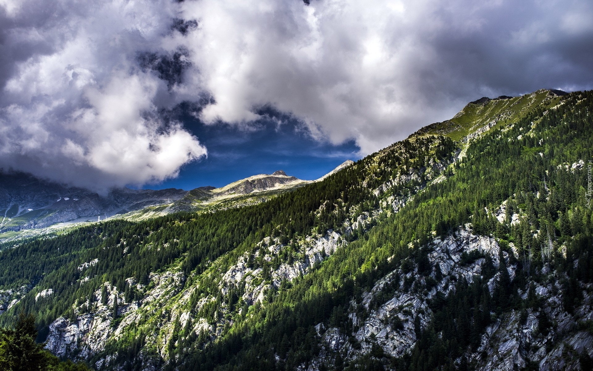 Edytor tapety: Góry, Drzewa, Chmury