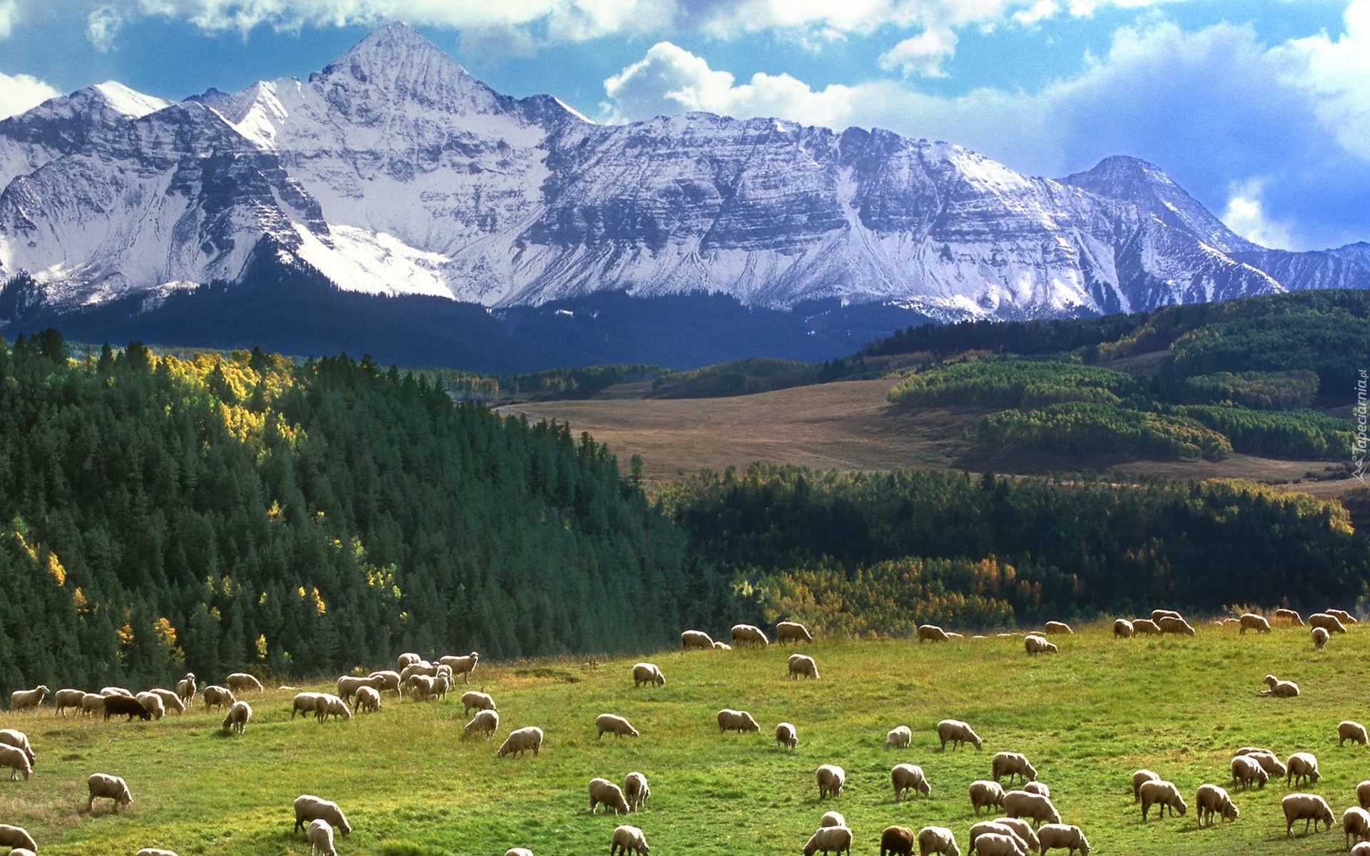 Edytor tapety: Góry, Lasy, Łąki, Owce, Wypas