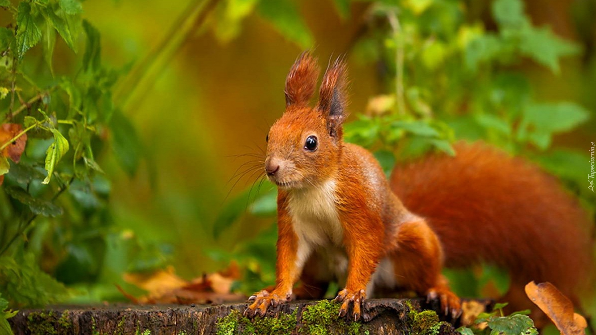 Edytor tapety: Wiewiórka, Pniak, Liście