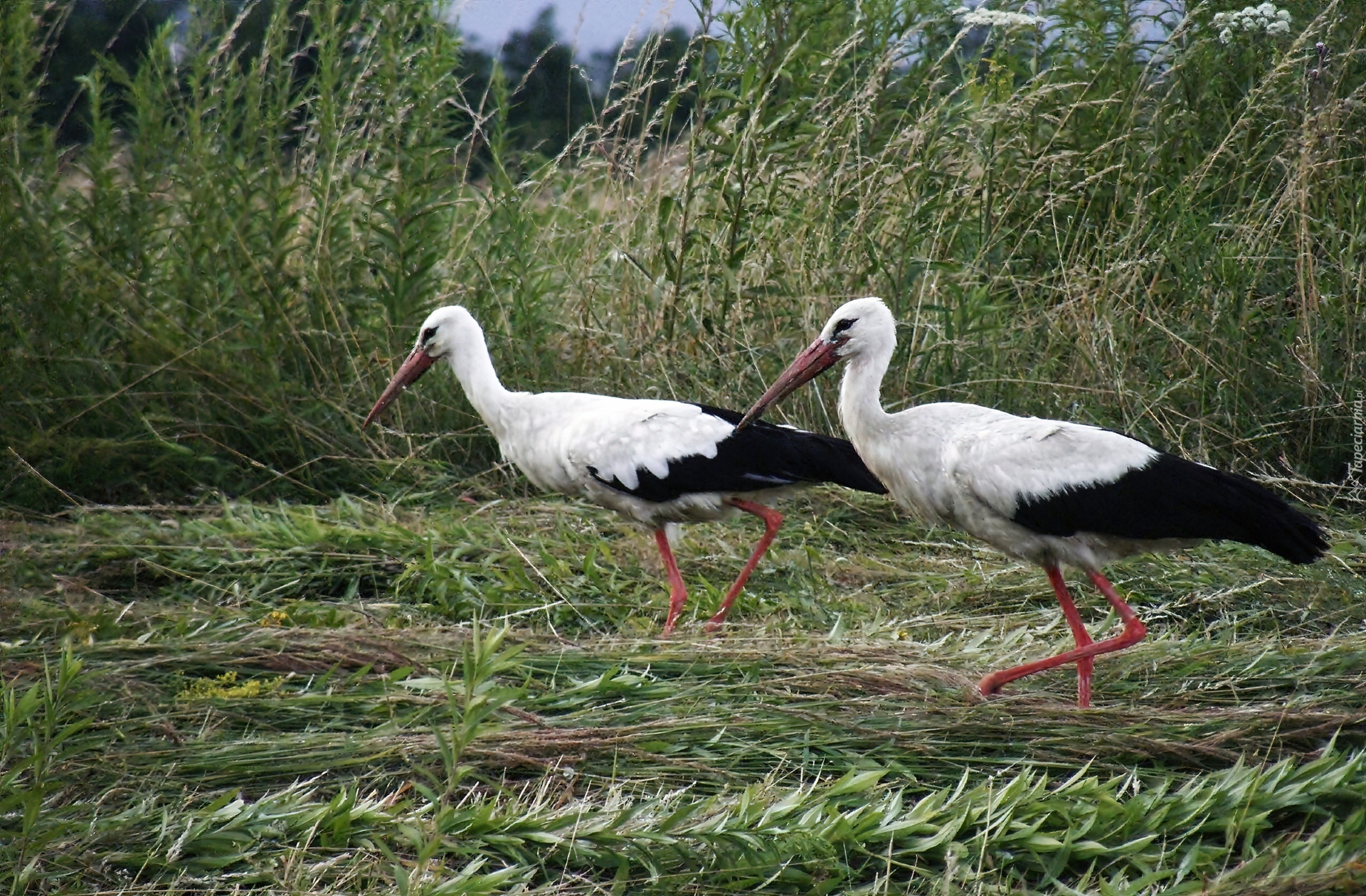 Edytor tapety: Bociany, Trawa
