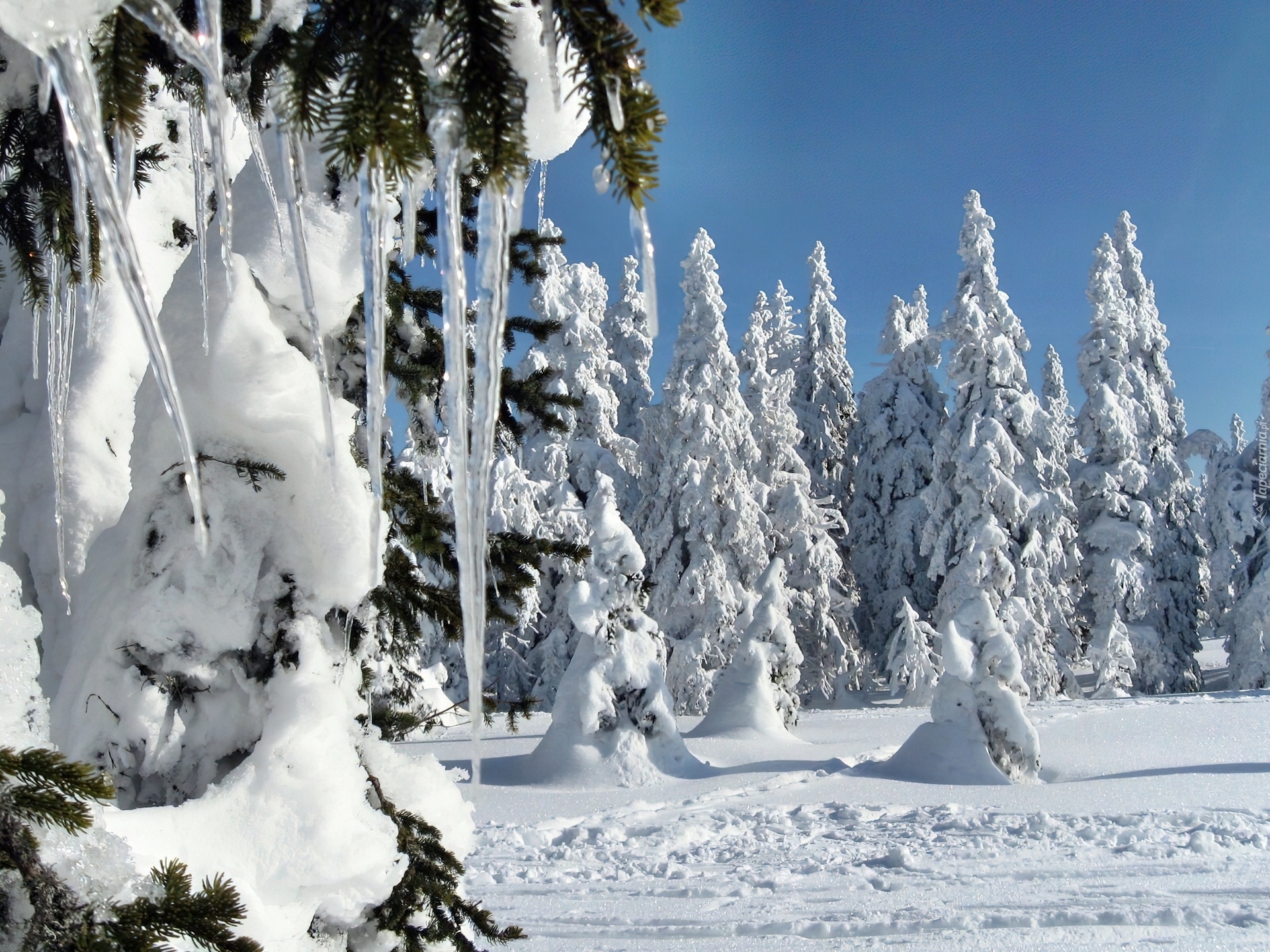 Edytor tapety: Zima, Świerki, Sople, Lodu