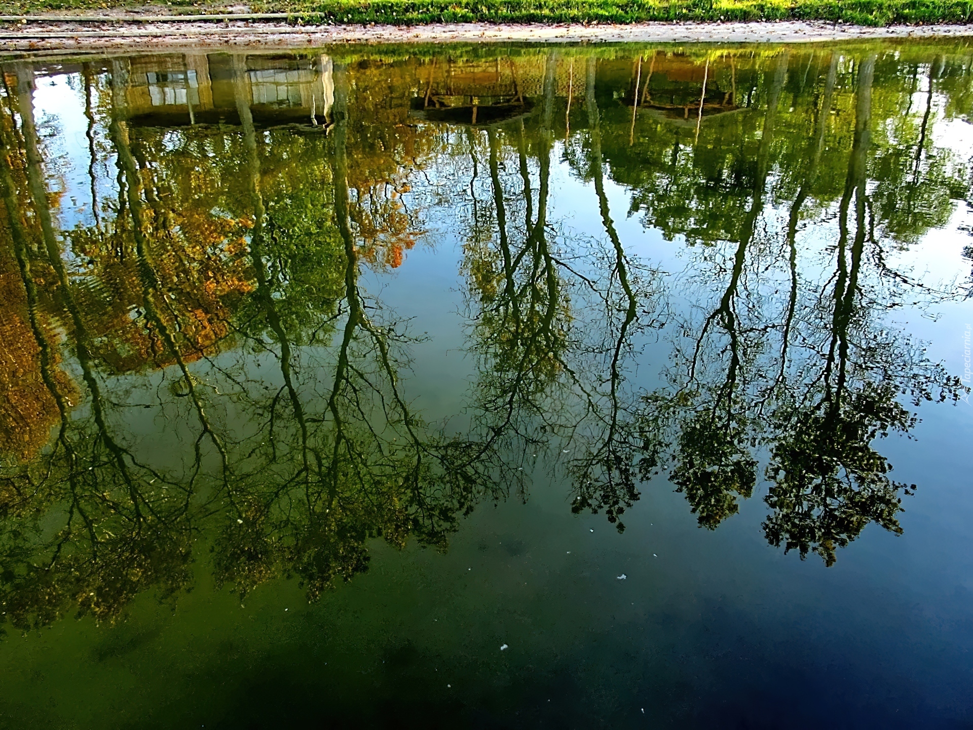 Edytor tapety: Jezioro, Drzewa, Jesień, Odbicie