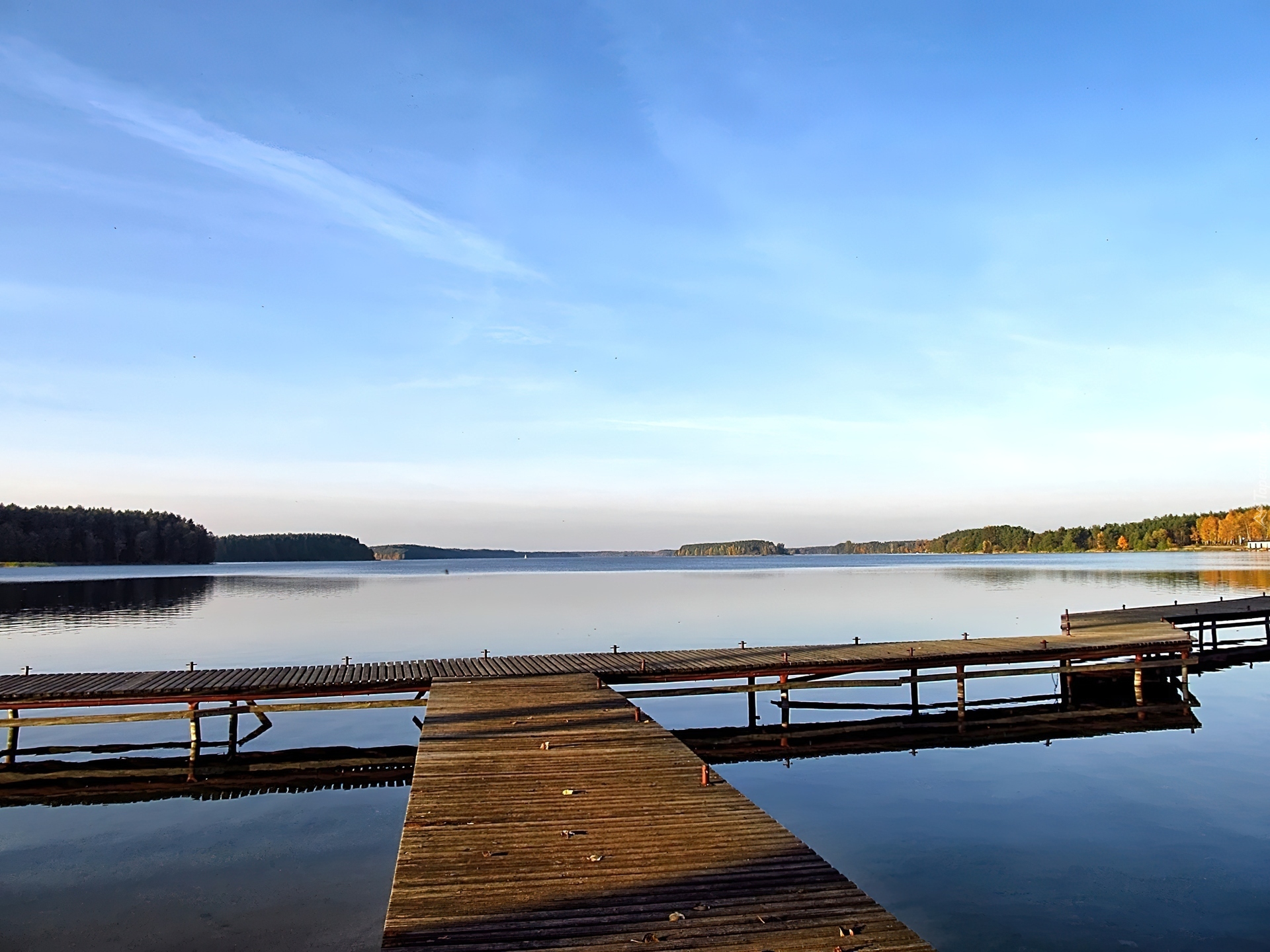 Edytor tapety: Jezioro, Wyspy, Jesień, Lasy, Drzewa, Pomost
