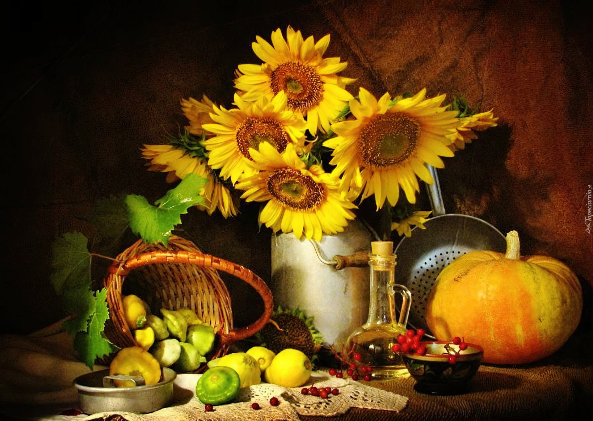Edytor tapety: Kwiaty, Słoneczniki, Dynia