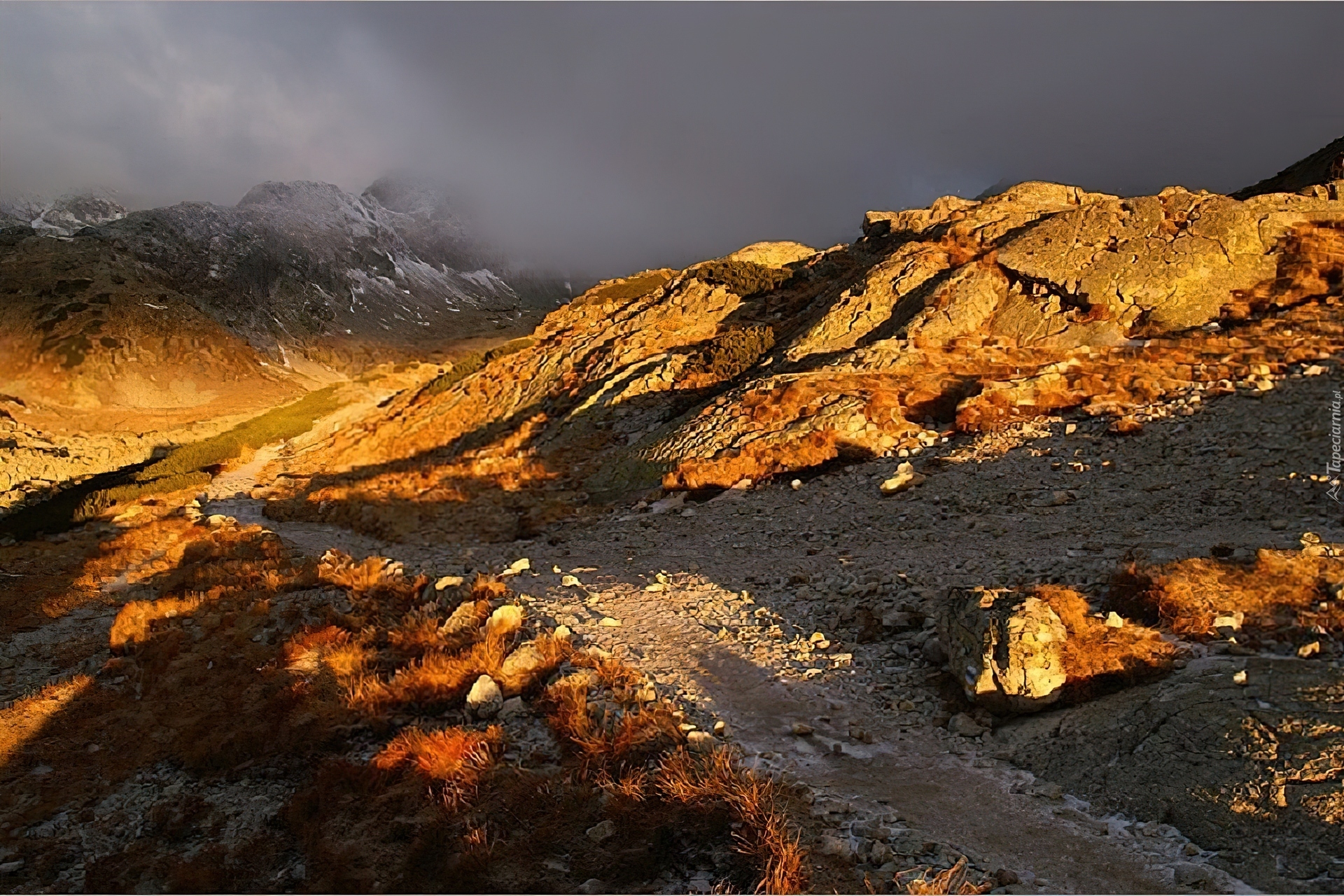 Edytor tapety: Góry, Mgła, Promienie, Słońca