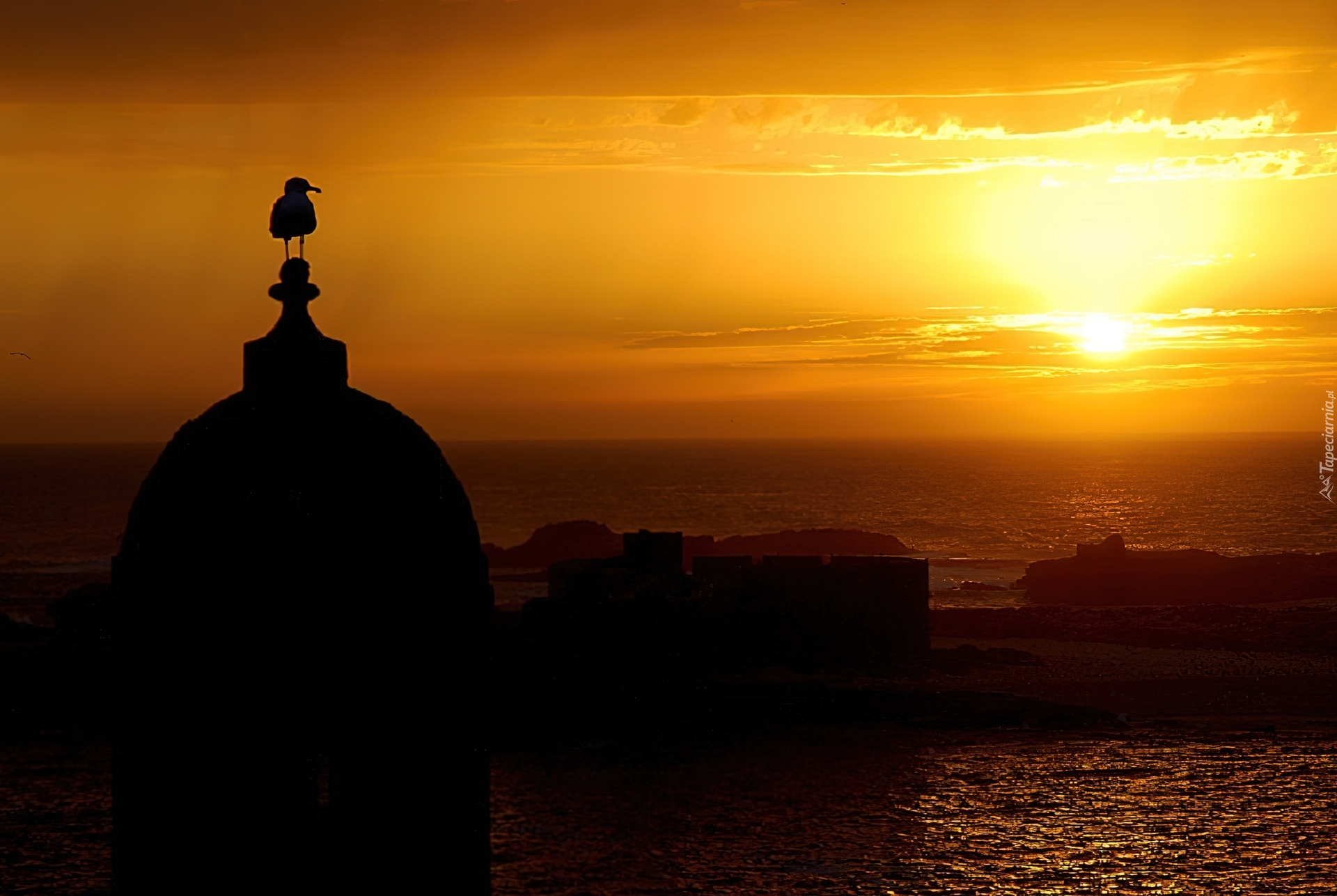 Edytor tapety: Morze, Zachód, Słońca, Ptak, Na, Dachu