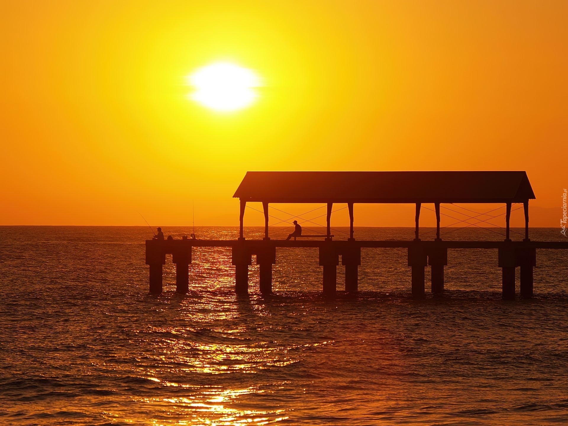 Edytor tapety: Zachód Słońca, Morze, Fale, Pomost