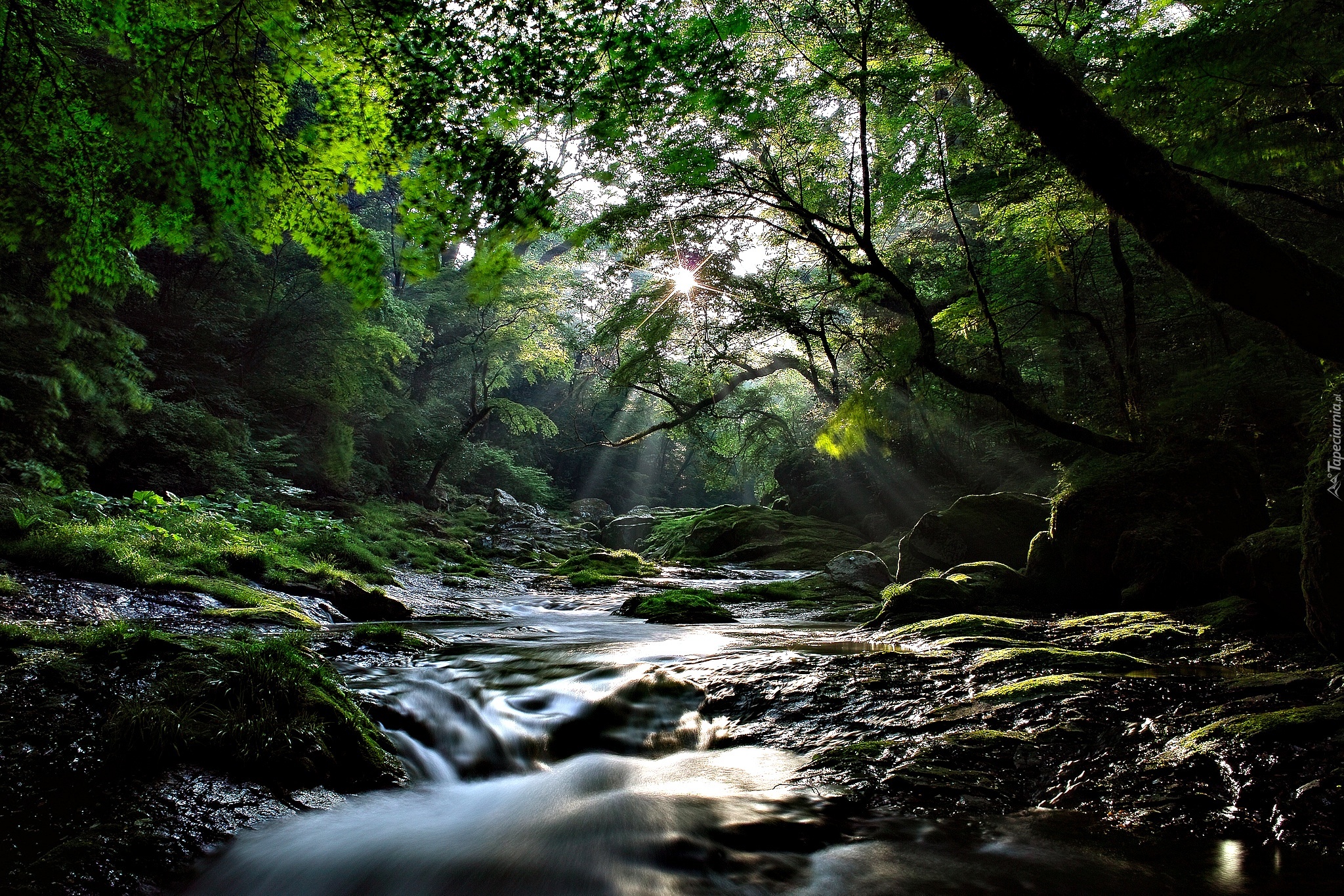 Edytor tapety: Drzewa, Wodospad, Kamienie