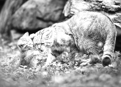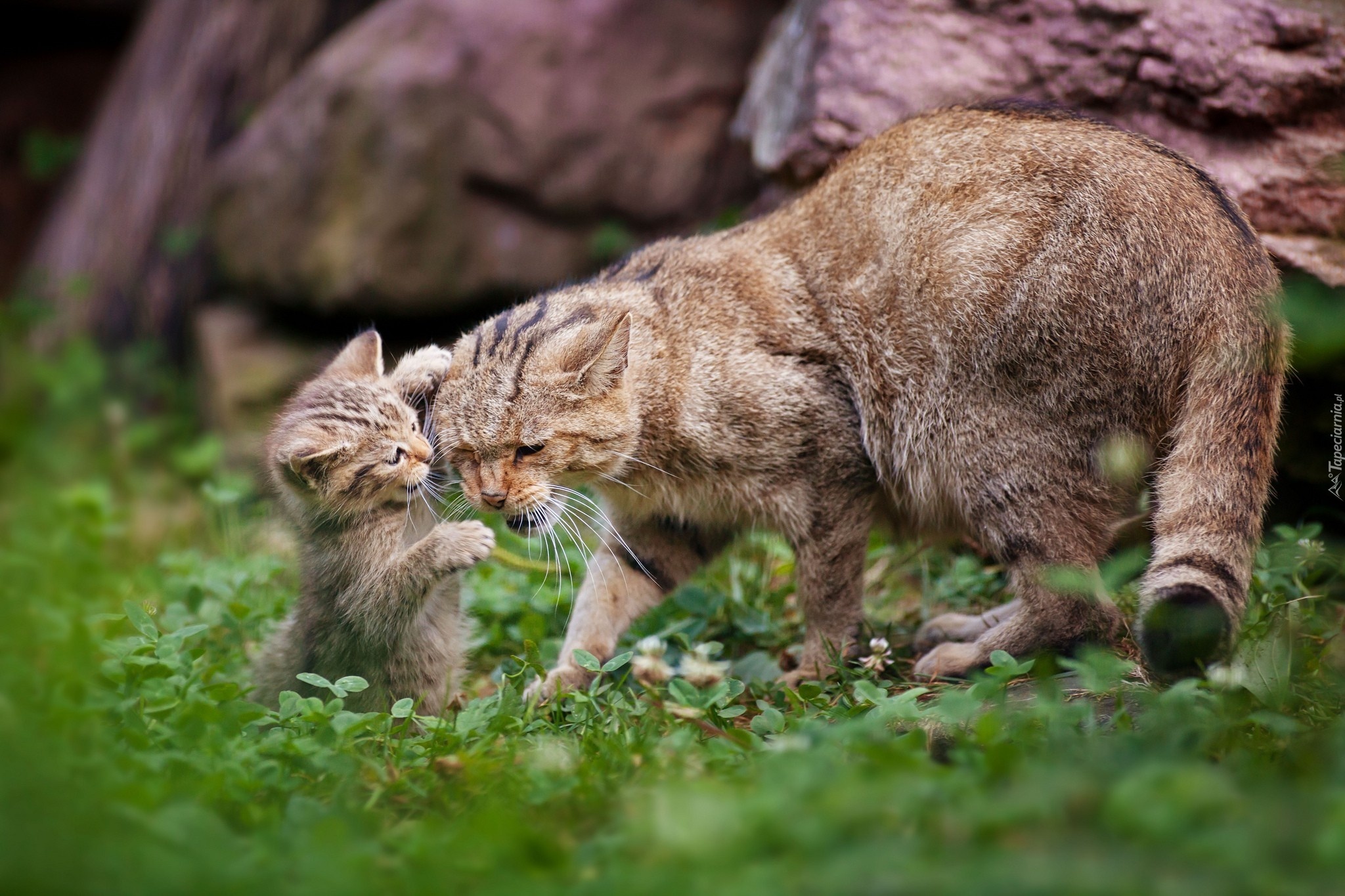 Edytor tapety: Dwa, Koty, Mama, Młody, Trawa