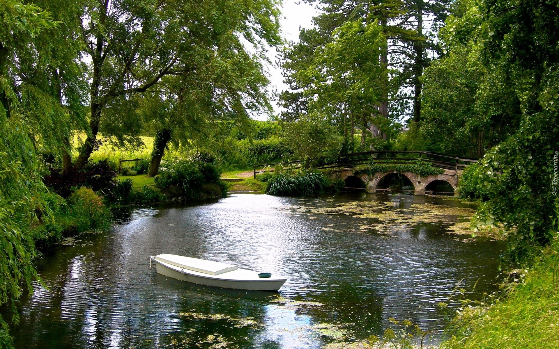 Edytor tapety: Stawek, Mostek, Drzewa, Łódka, Zieleń