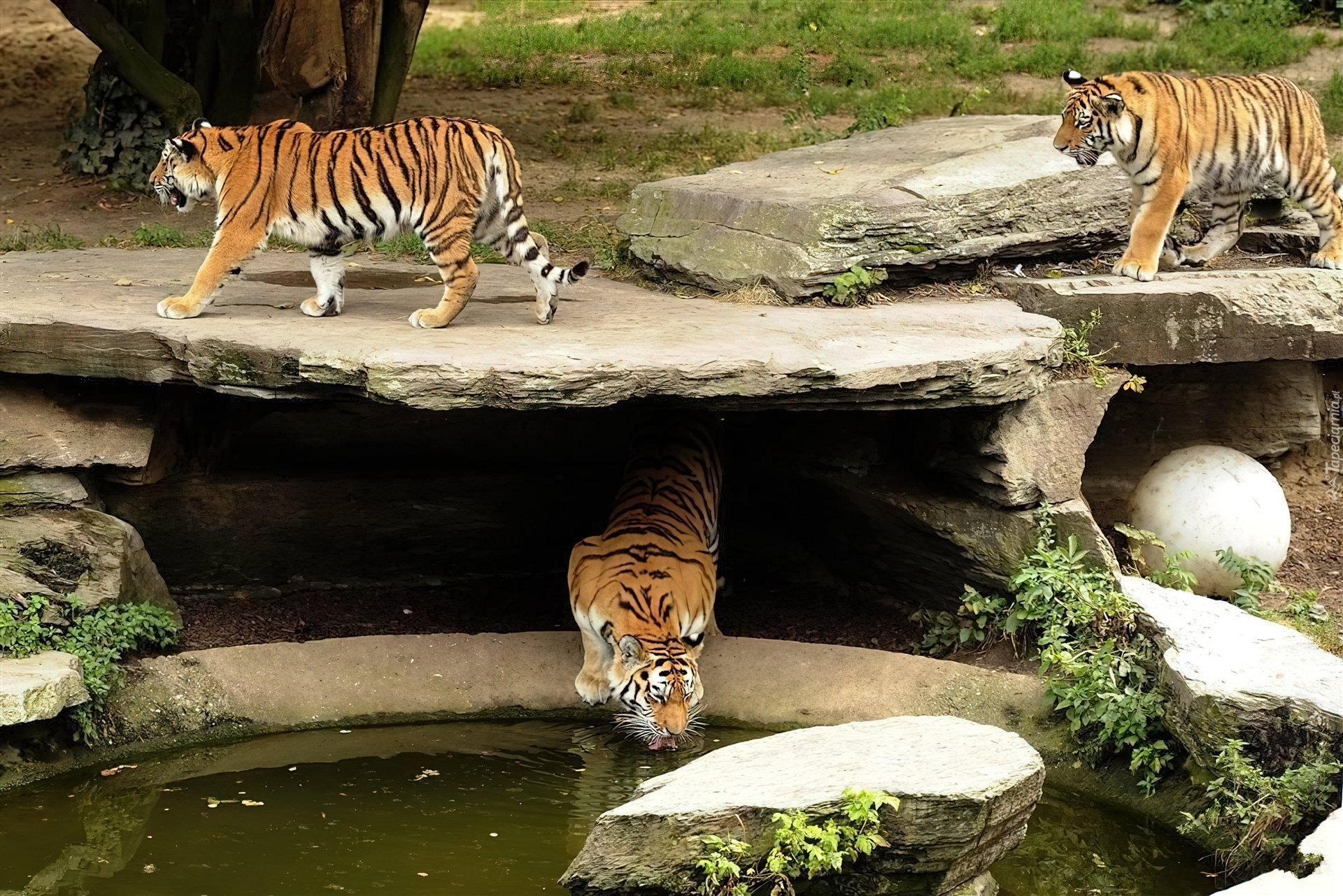 Edytor tapety: Tygrysy, ZOO, Wodopój