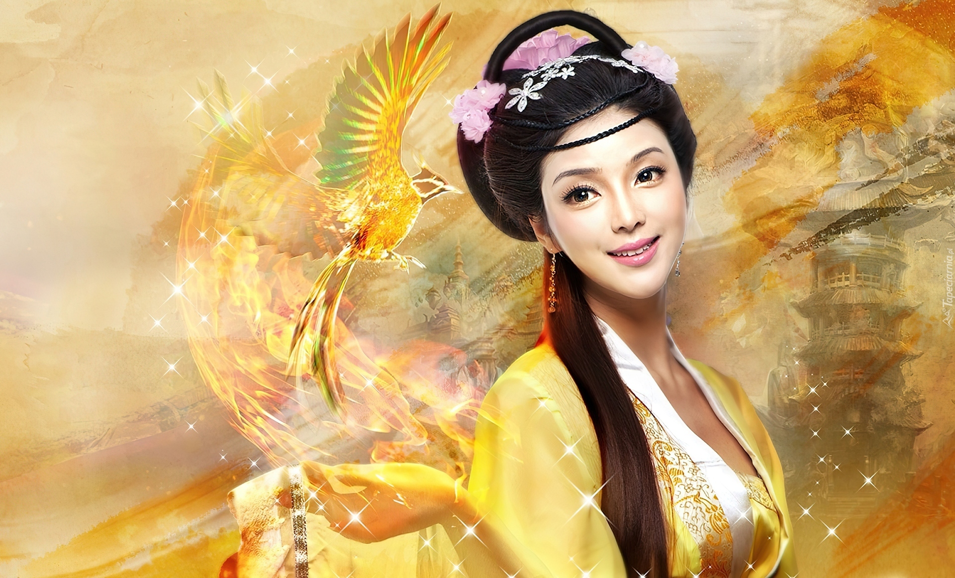 Edytor tapety: Kobieta, Ręka, Ptak