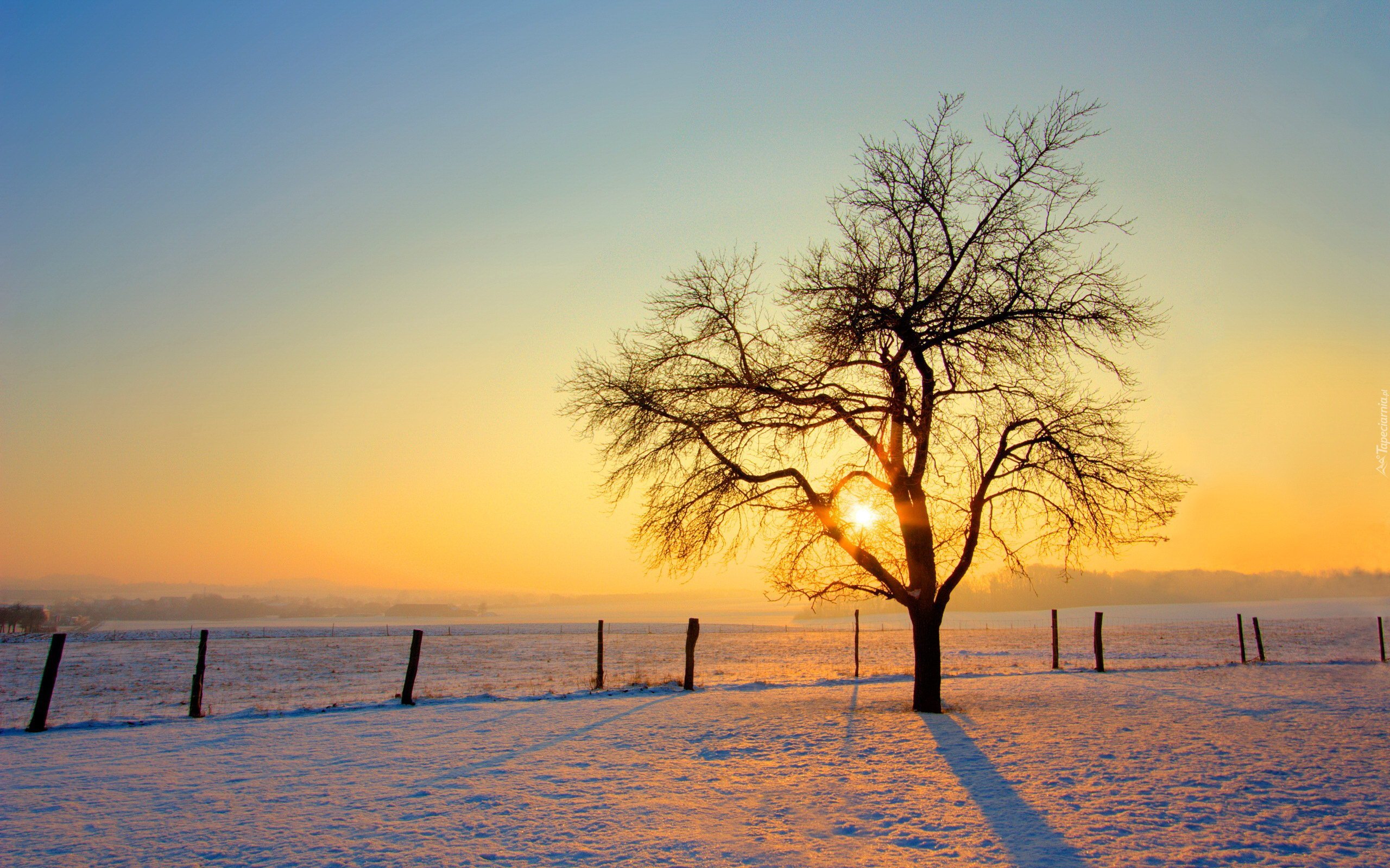 Edytor tapety: Samotne, Drzewo, Wschód, Słońca, Niebo