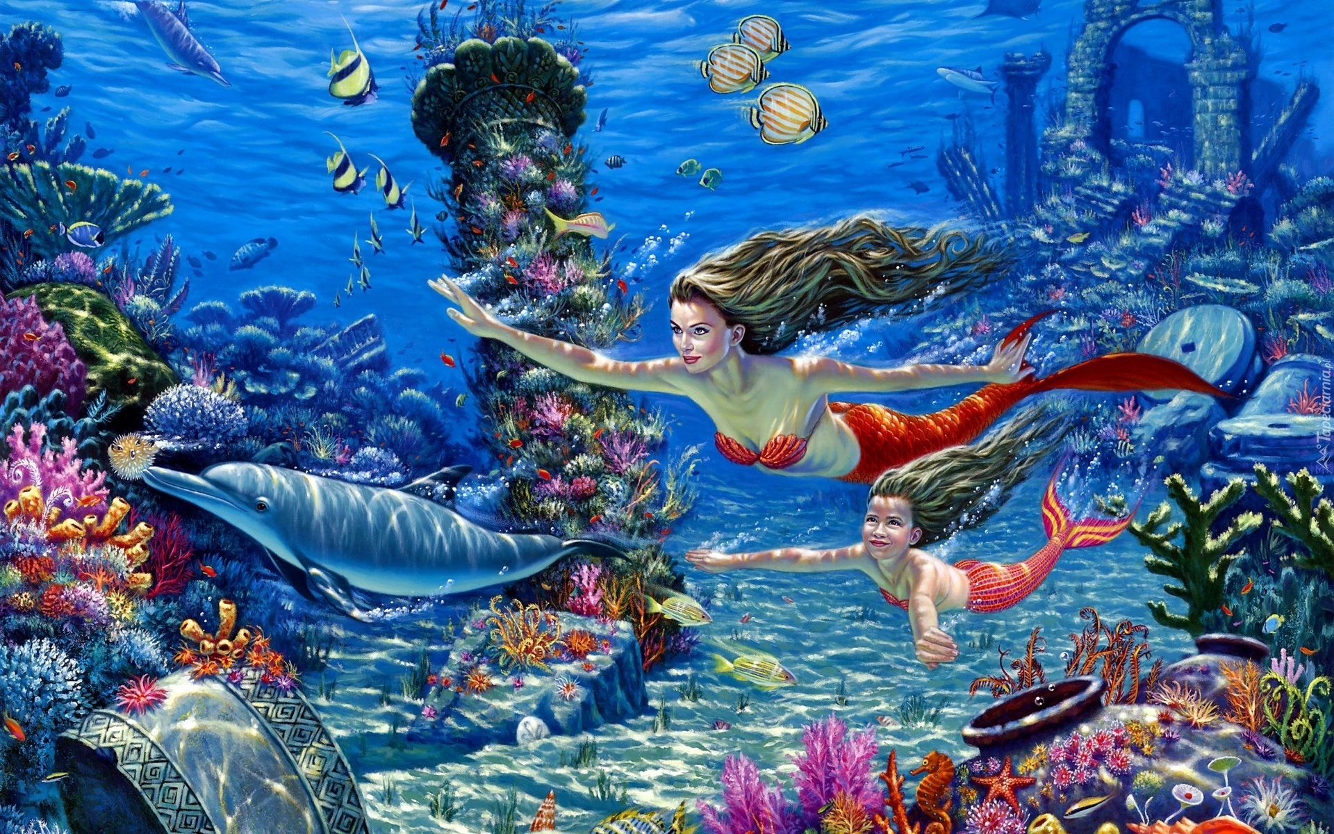 Edytor tapety: Syreny, Delfin, Dno, Morskie