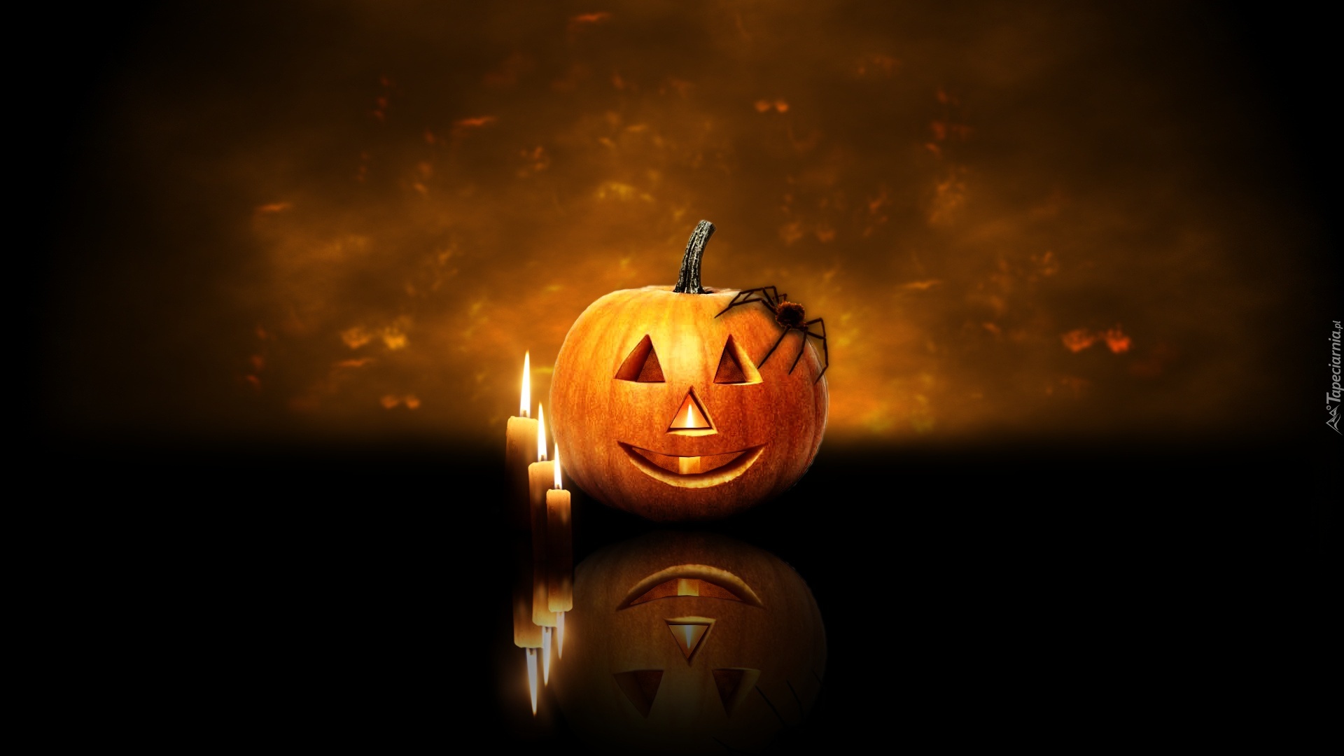 Edytor tapety: Halloween, Dynia, Pająk, Świece