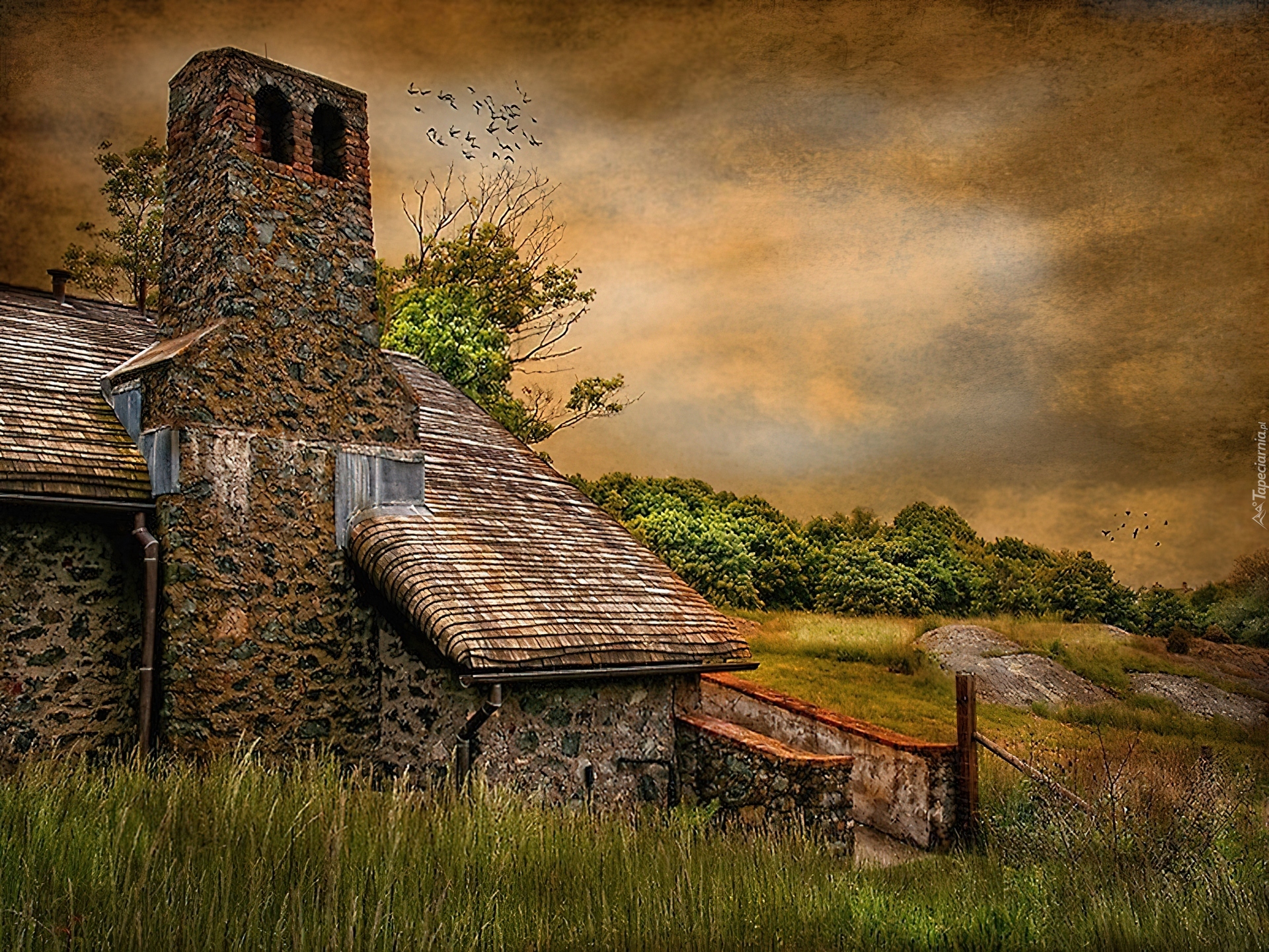 Edytor tapety: Domek, Z, Kamienia, Drzewa