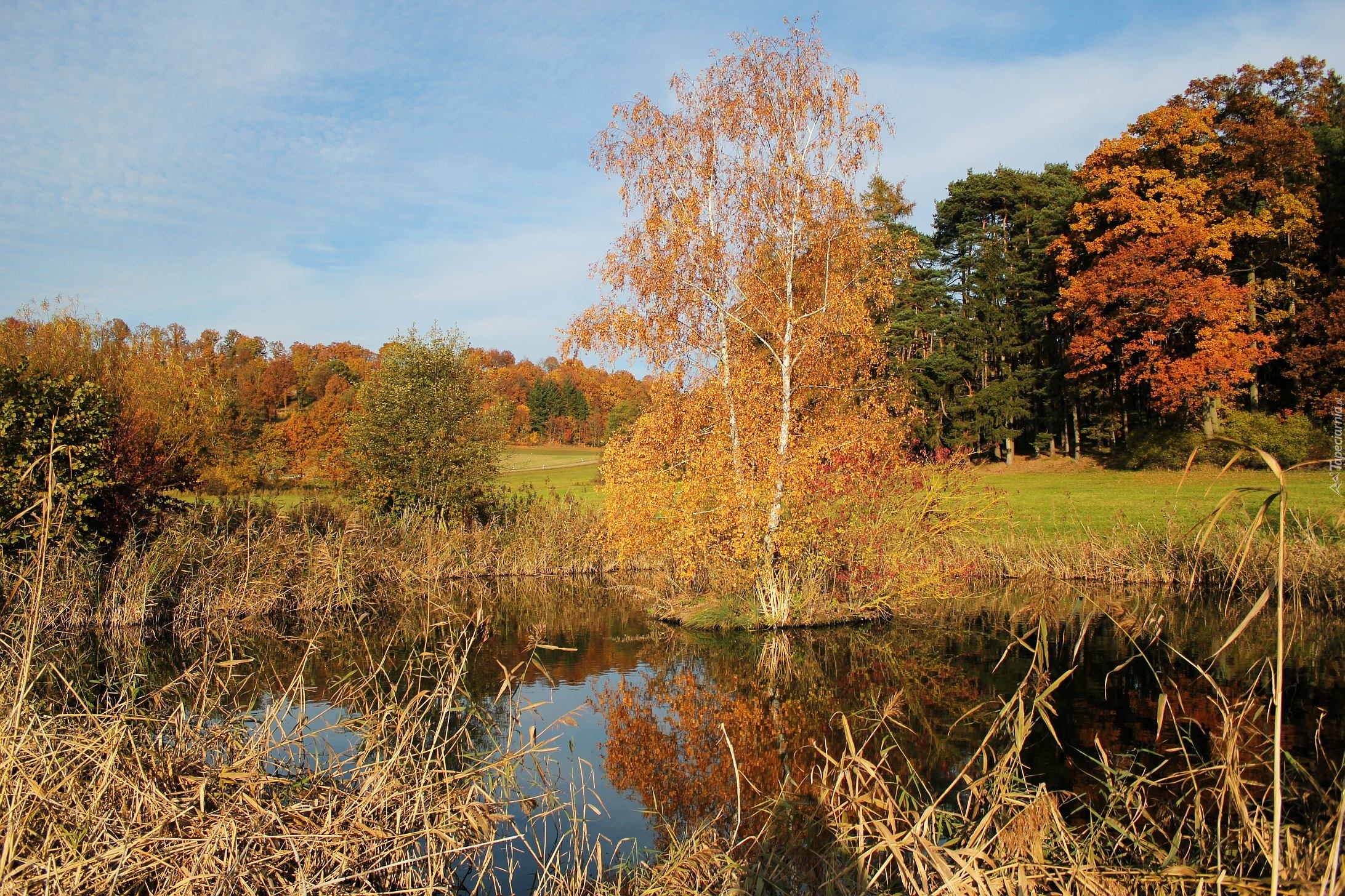 Edytor tapety: Jezioro, Drzewa, Łąka