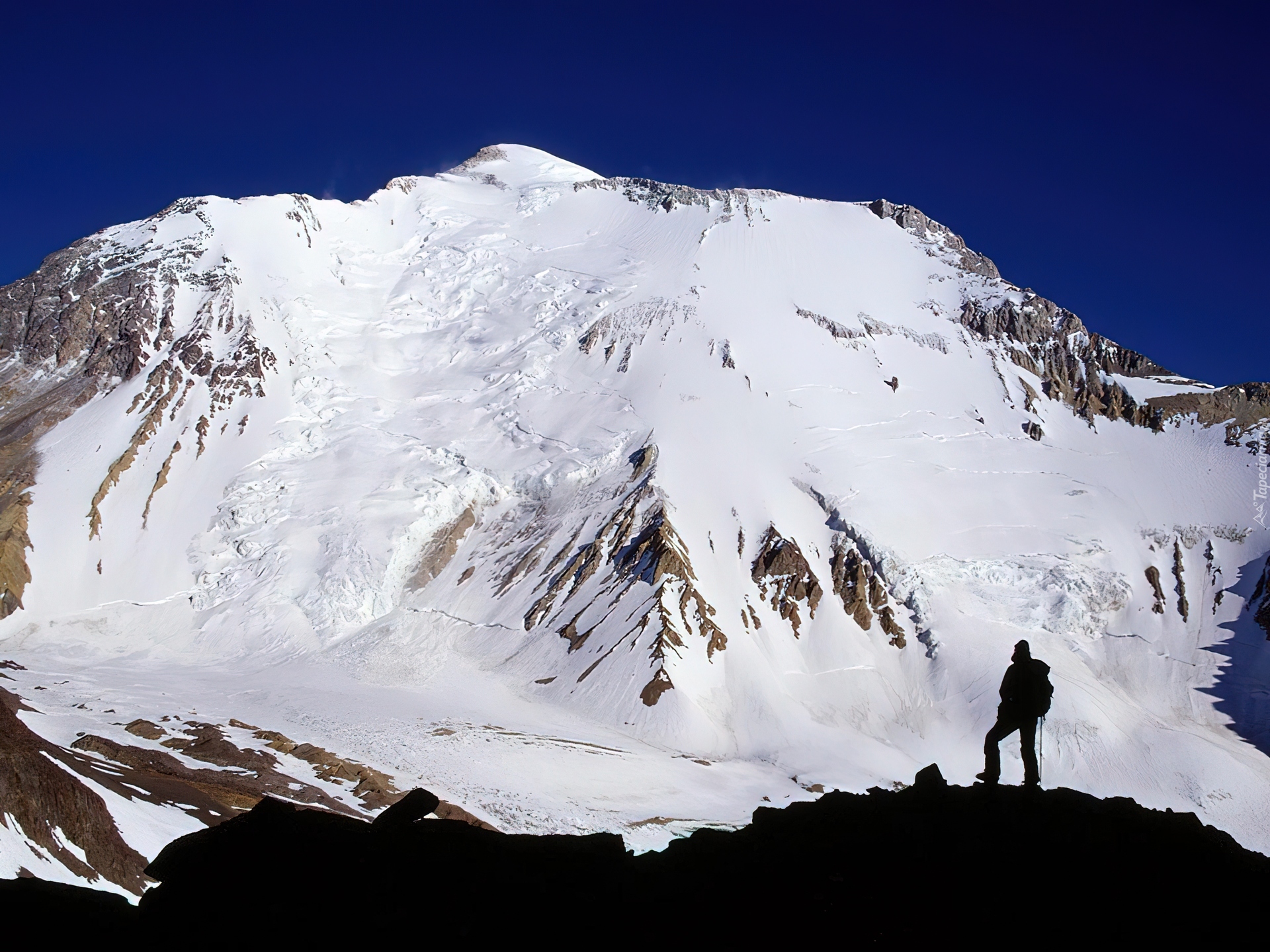 Edytor tapety: Góra, Pokryta, Śniegiem, Człowiek