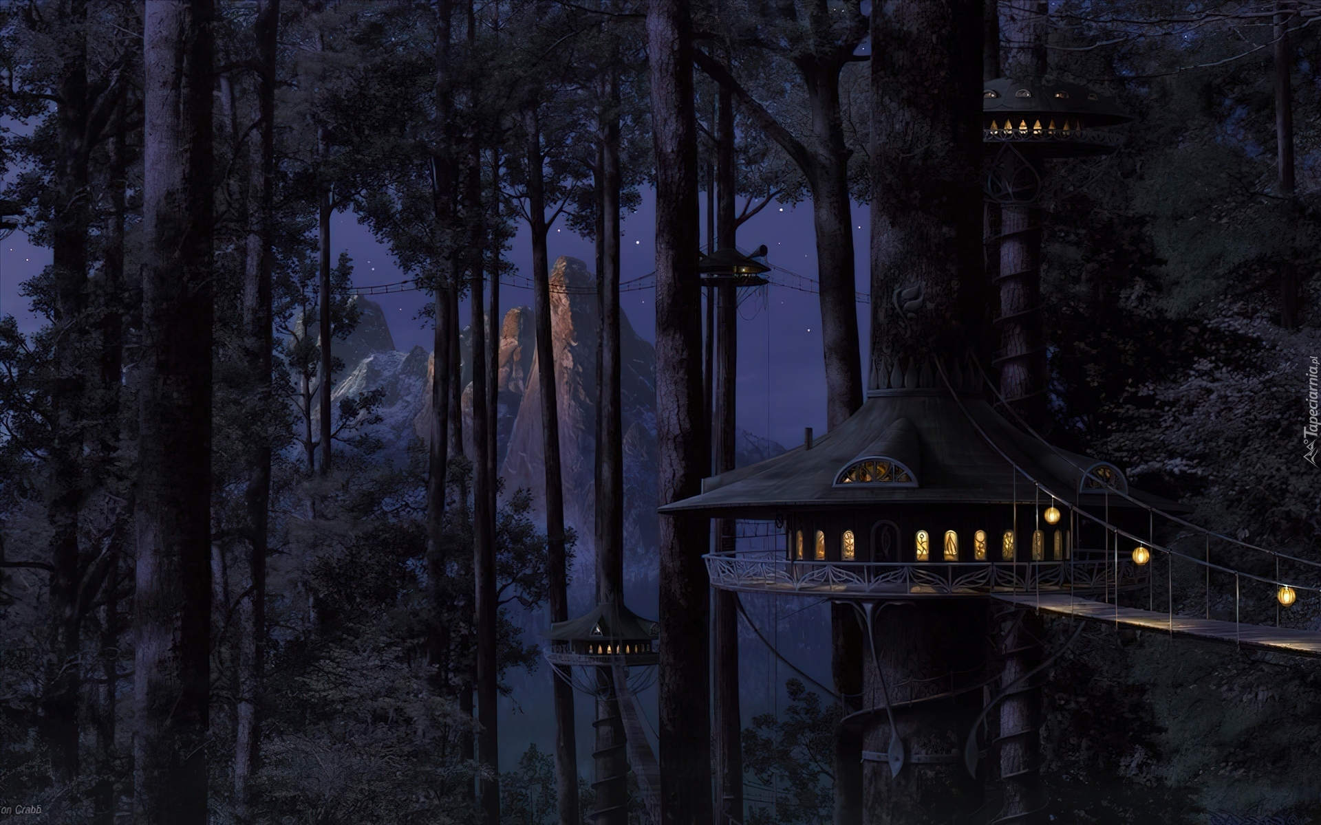Edytor tapety: Las, Podwieszane, Domy, Góry