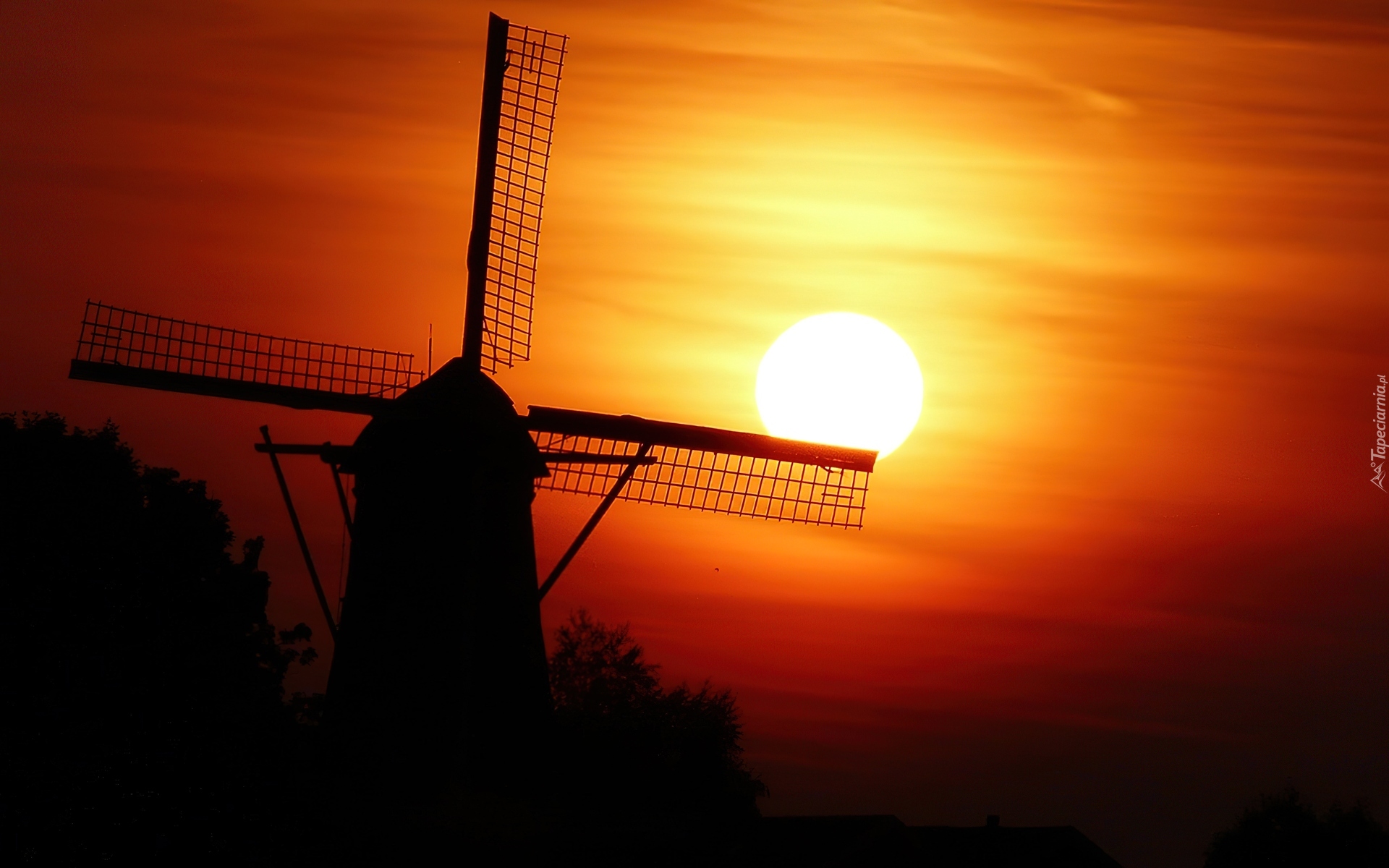 Edytor tapety: Zachód, Słońca, Wiatrak