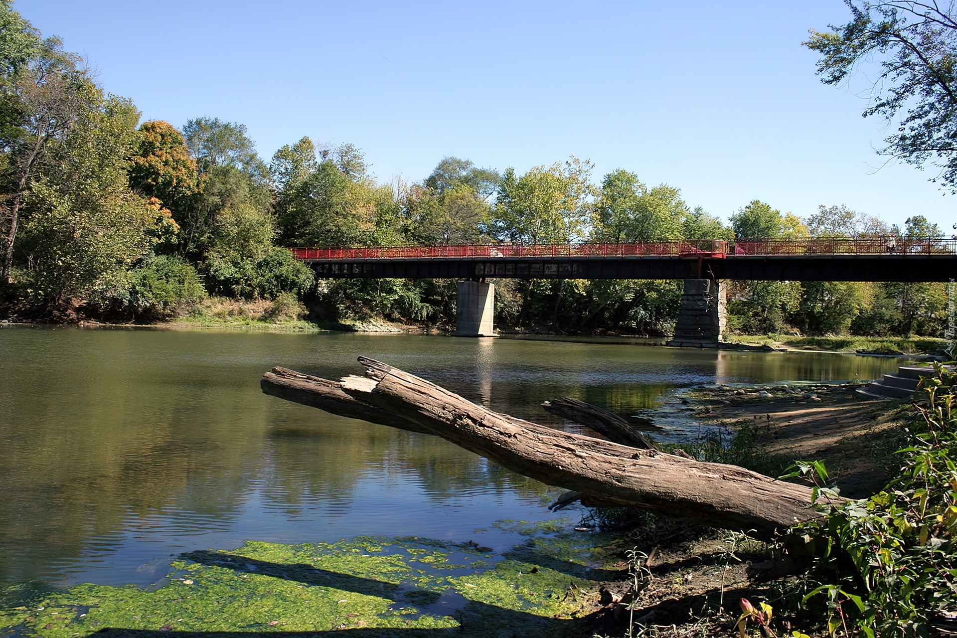 Edytor tapety: Most, Rzeka, Drzewa