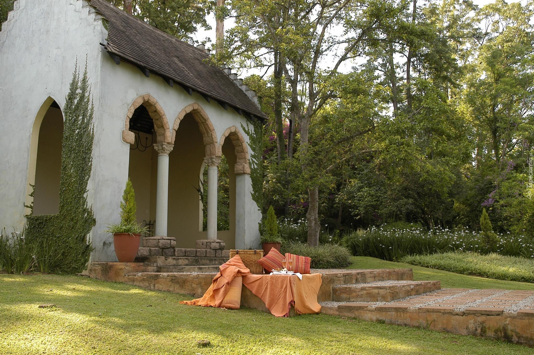 Edytor tapety: Ogród, Dom, Drzewa