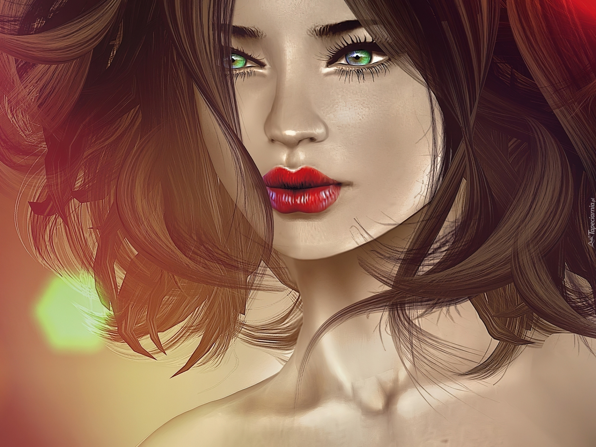 Edytor tapety: Piękna, Twarz, Zielone, Oczy, Grafika