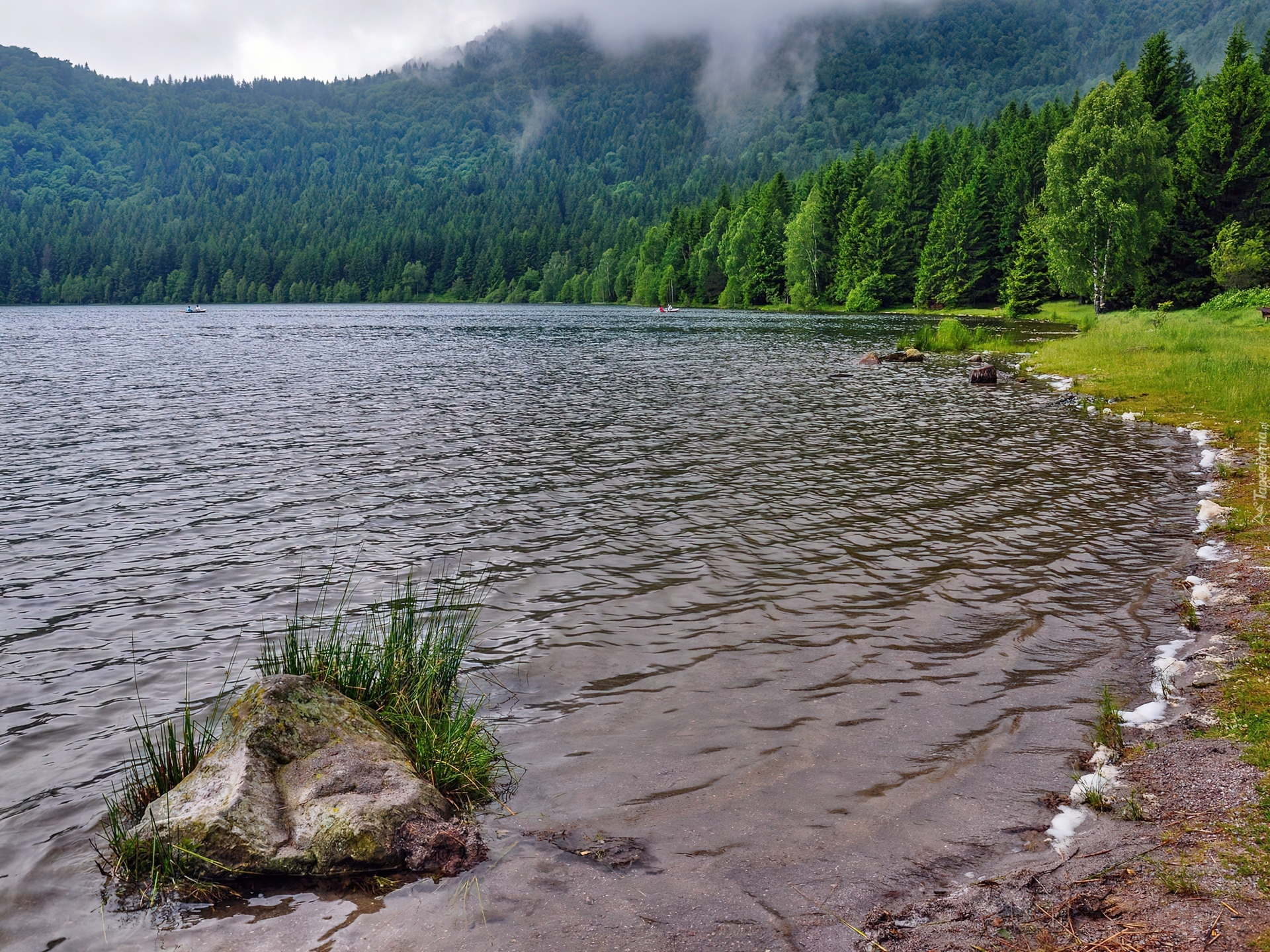 Edytor tapety: Jezioro, Brzeg, Las, Mgła