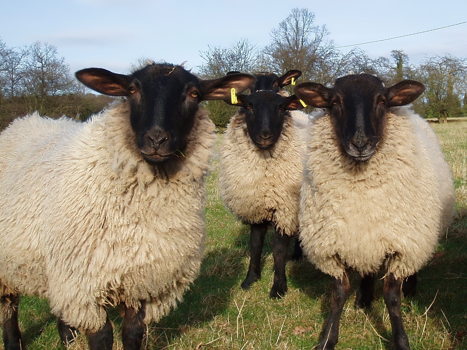 Edytor tapety: Trzy, Owce, Łąka, Drzewa