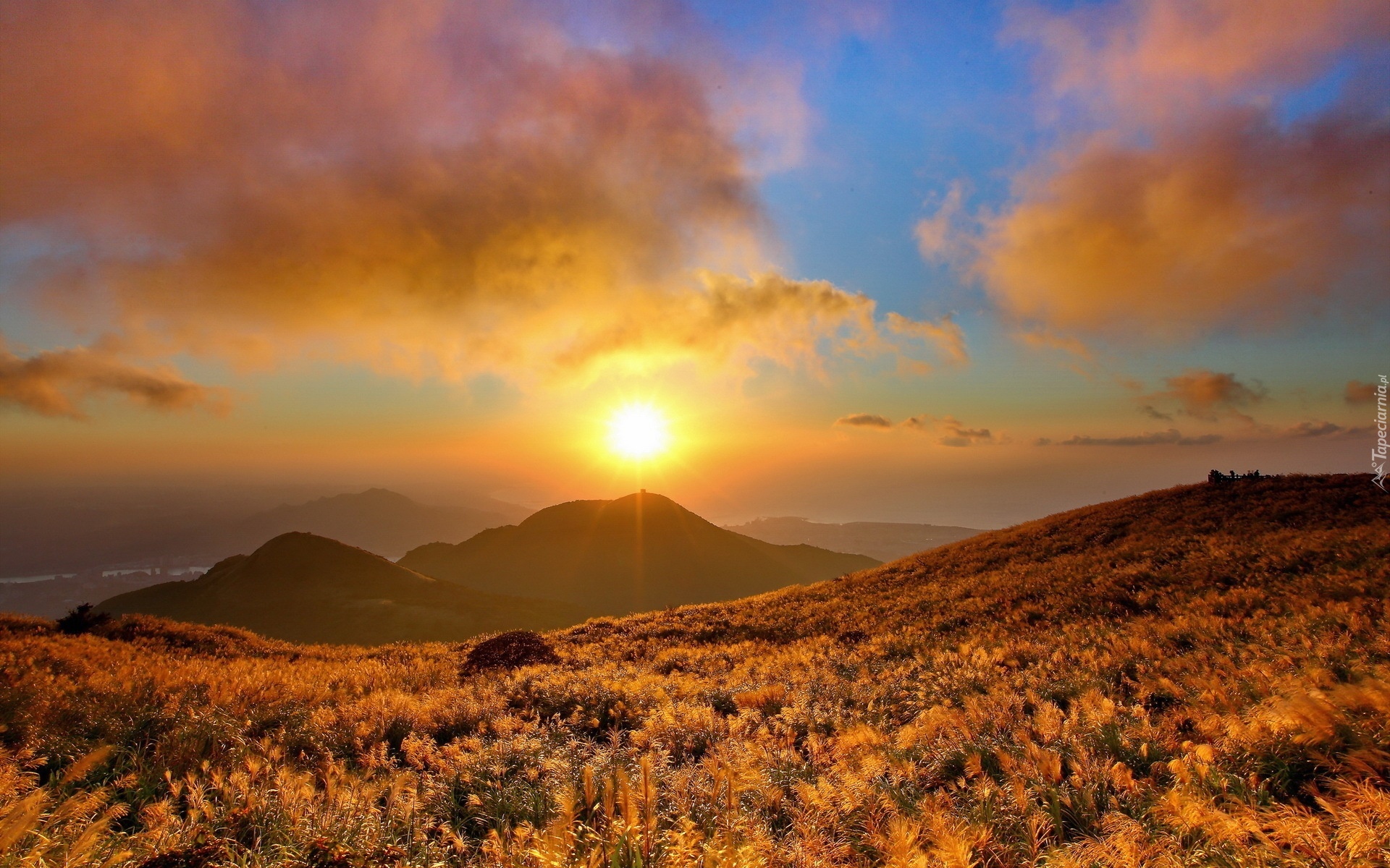 Edytor tapety: Zachód, Słońca, Góry, Rośliny