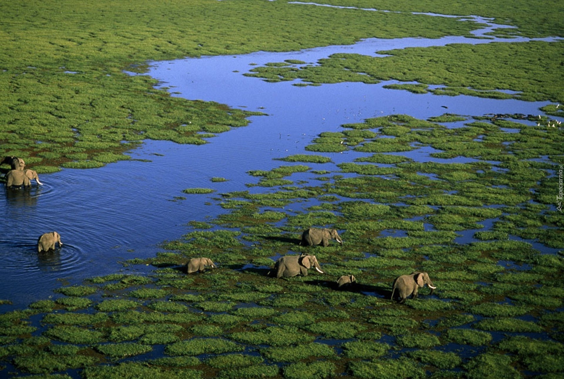 Edytor tapety: Stadko, Słoni, Rzeka, Rozlewisko
