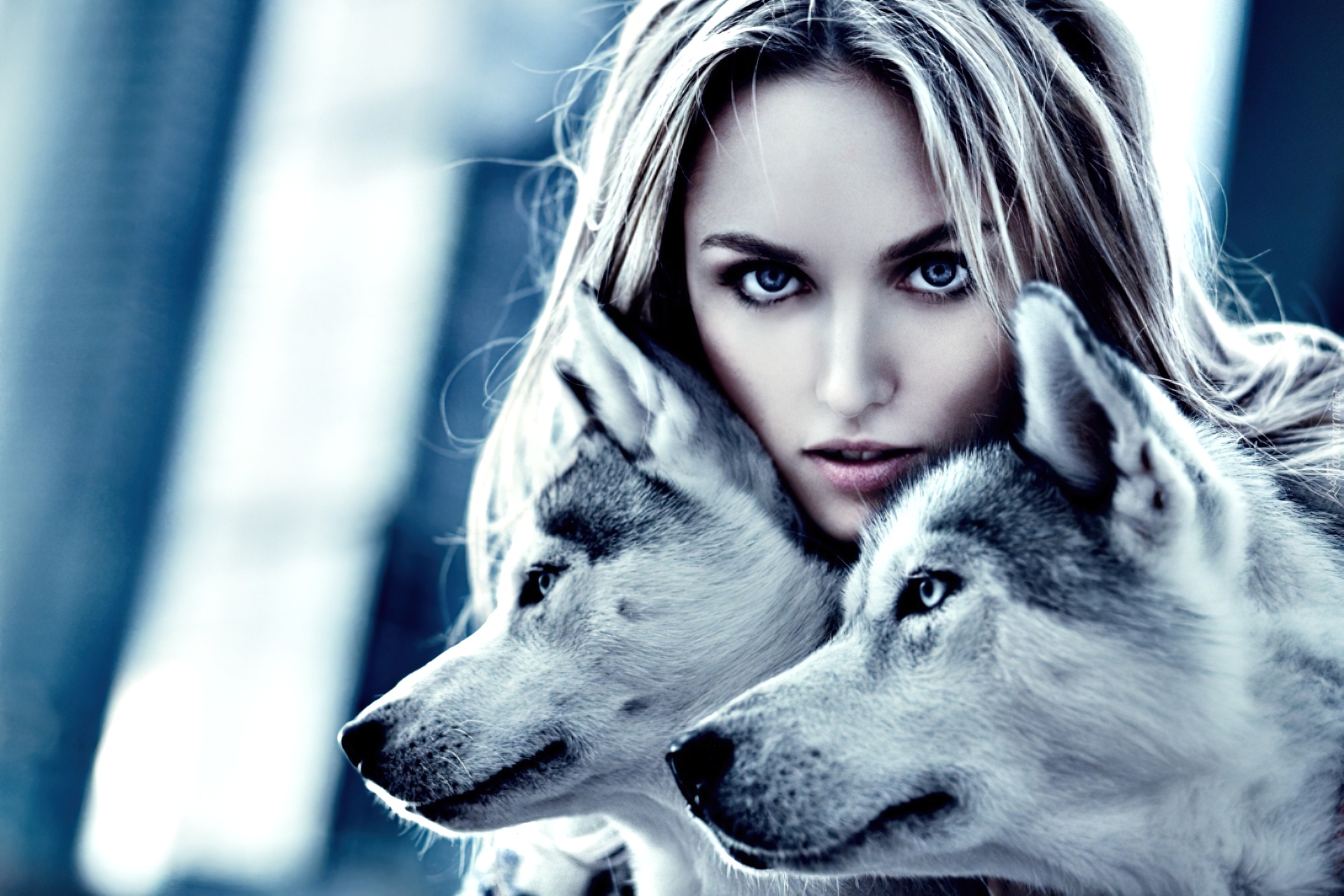 Edytor tapety: Kobieta, Wilki