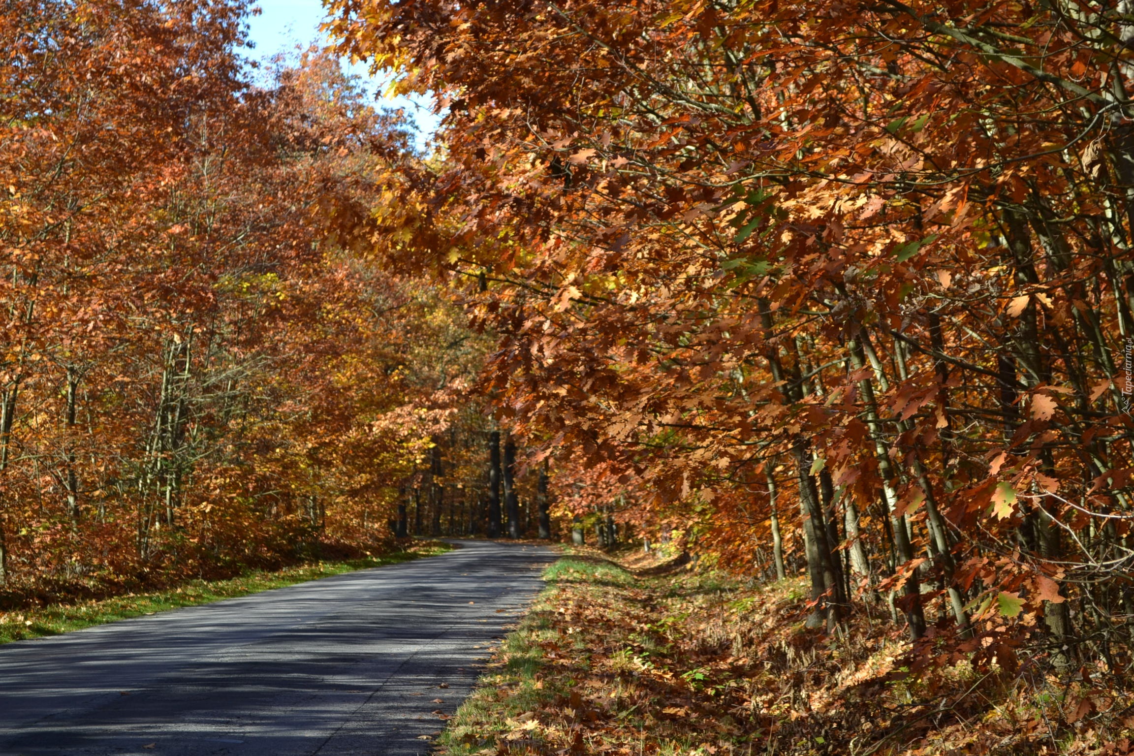 Edytor tapety: Szosa, W, Jesiennym, Dębowym, Lesie