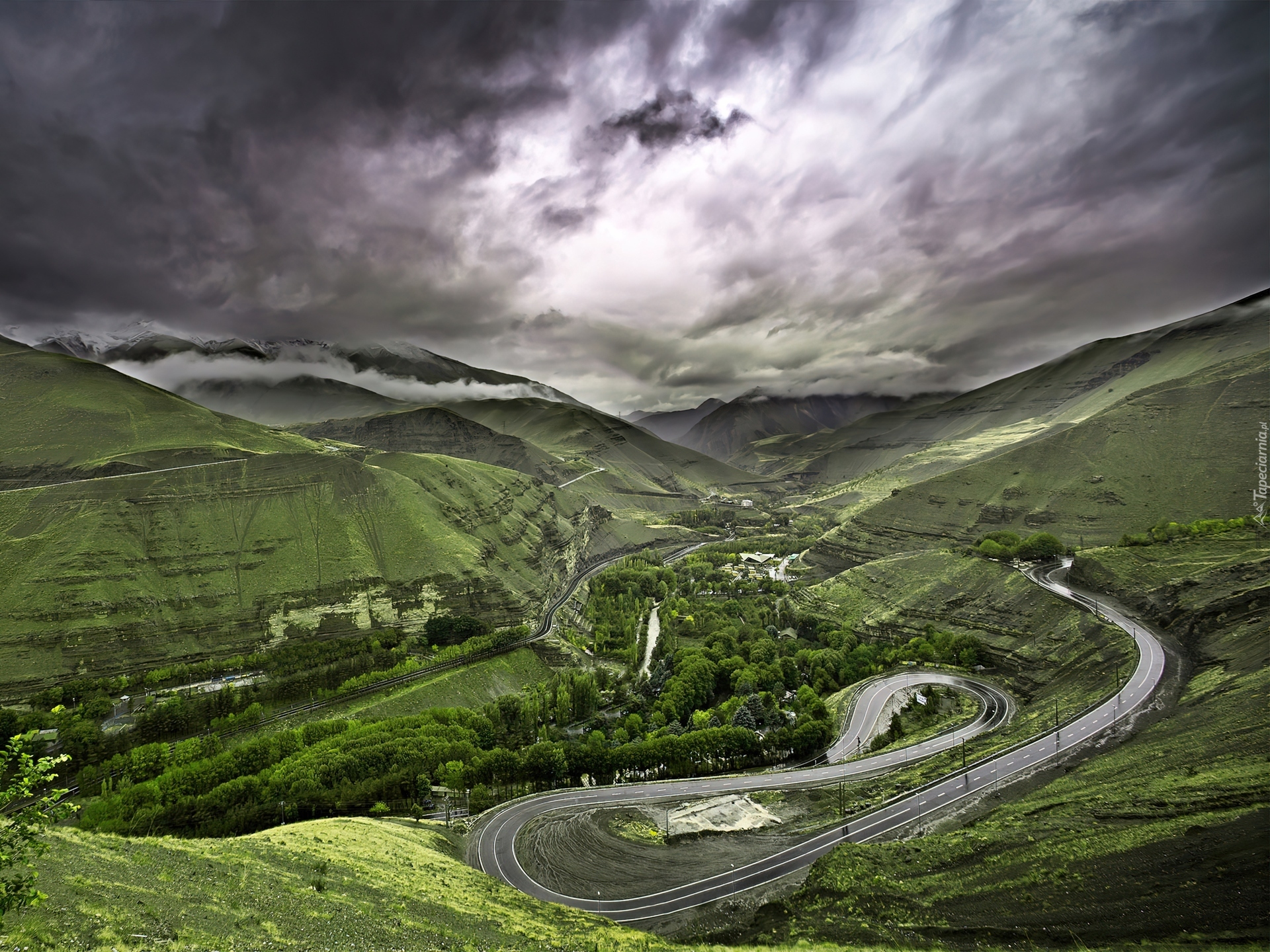 Edytor tapety: Droga, Góry, Chmury