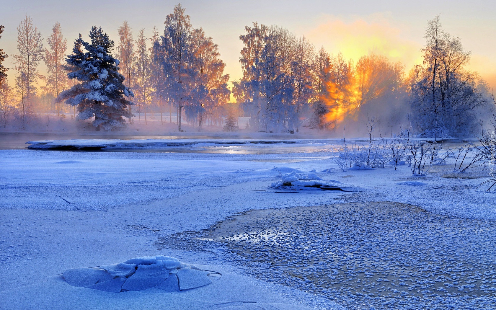 Edytor tapety: Zamarznięte, Jezioro, Zachód, Słońca