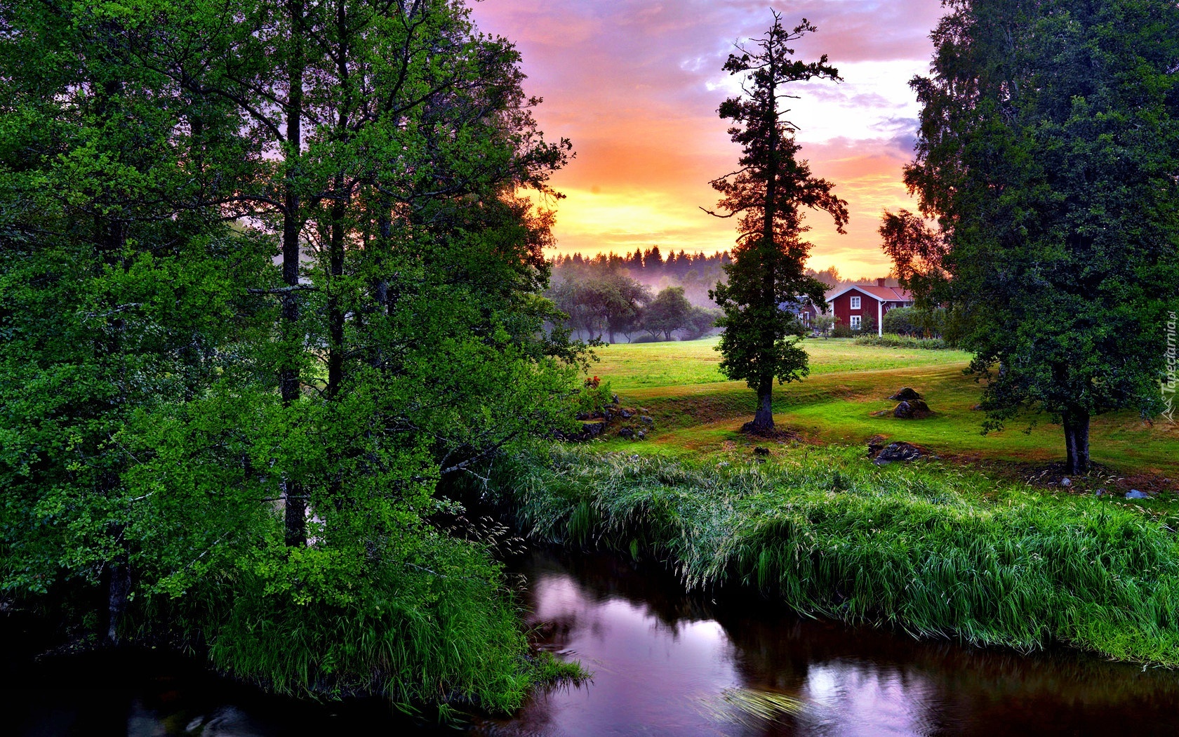 Edytor tapety: Rzeczka, Drzewa, Zieleń